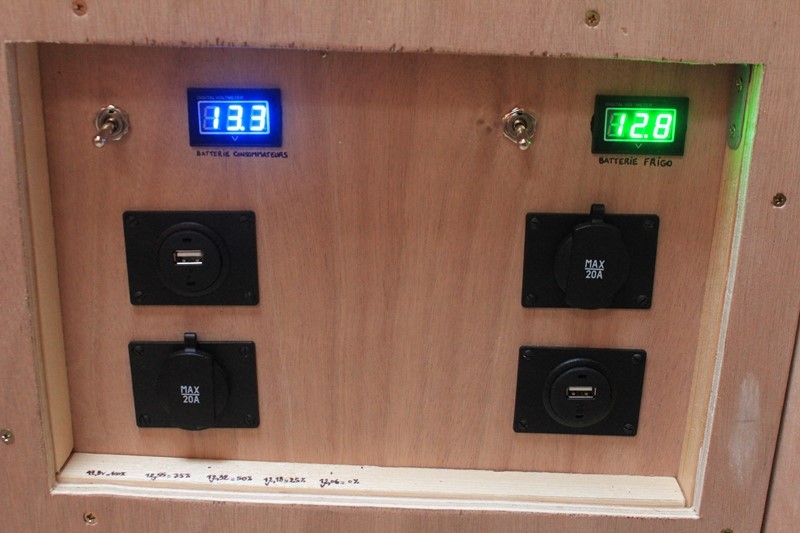 Les forumeurs de Trafic Aménagé m'ont énormément aidé pour faire l'électricité (dont je ne suis pas peu fière ). Vous trouverez le détail de sa réalisation sur leur site, par ici