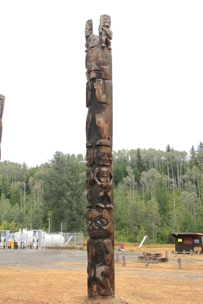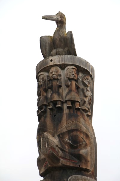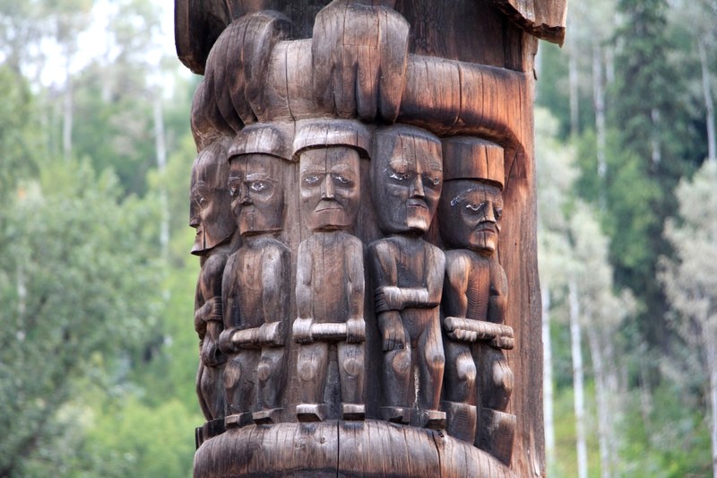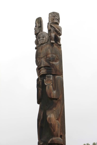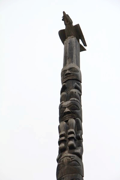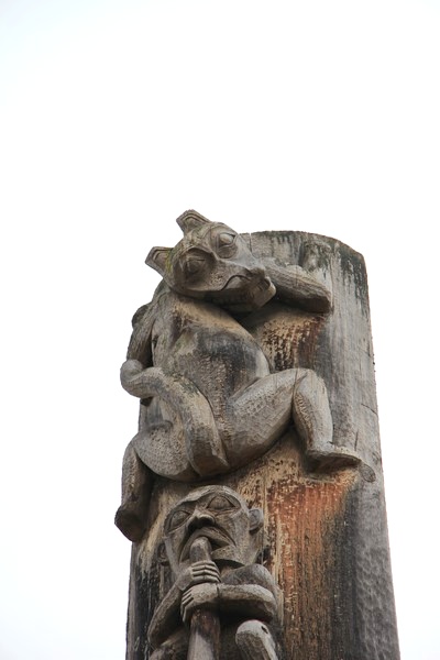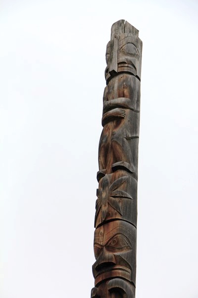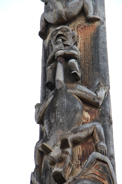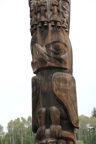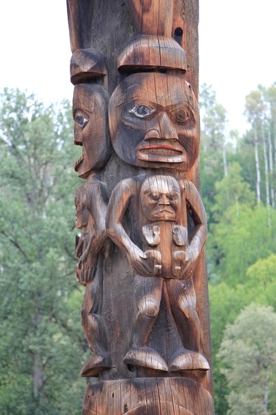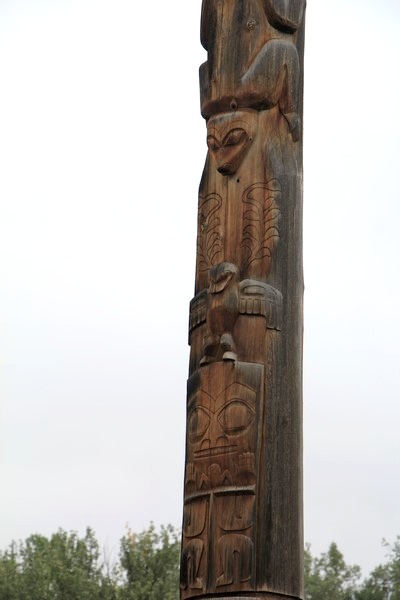 Ces totems n'ont rien de religieux. Ils permettent seulement aux artistes d'exprimer leurs talents. Dommage que le temps ait été si nuageux, les photos ne rendent pas la finesse et la beauté des sculptures.