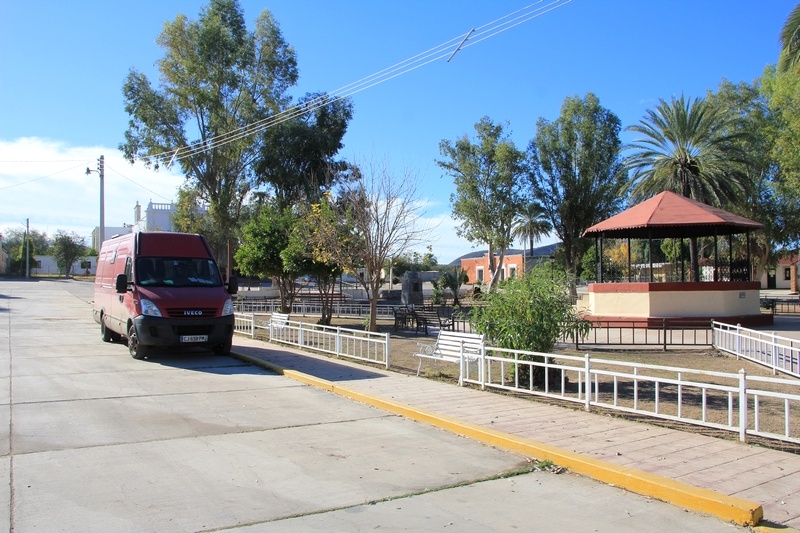 Après avoir demandé la permission aux voisins, nous passons une nuit tranquille sur la place (29.488379,-110.72627).