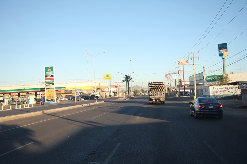 Arrêts dodo bruyants en bord de route de Tecoripa (28.622546,-109.950491) et sur une Pemex d'Hermosillo (29.137376,-110.909954), énorme ville où nous faisons les courses au Walmart et ensuite du wifi dans un McDo.