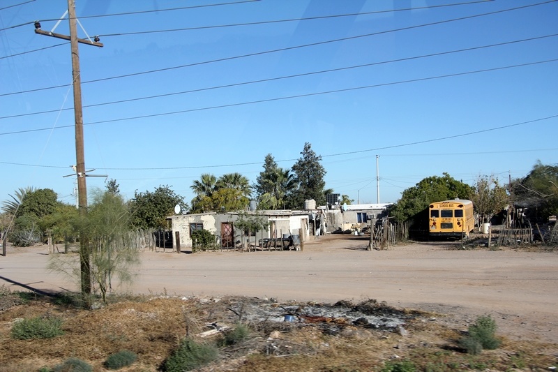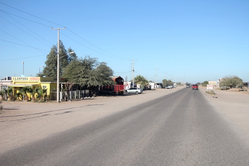 On fait le plein d'eau en ville (31.33239,-113.5397) à 8 pesos le garafon dans un distributeur self-service, quelque courses au Bodega Aurrera, un peu de nenet au Burger King (31.322738,-113.535906), et on reprend la route en longeant la côte du Golf de Californie.