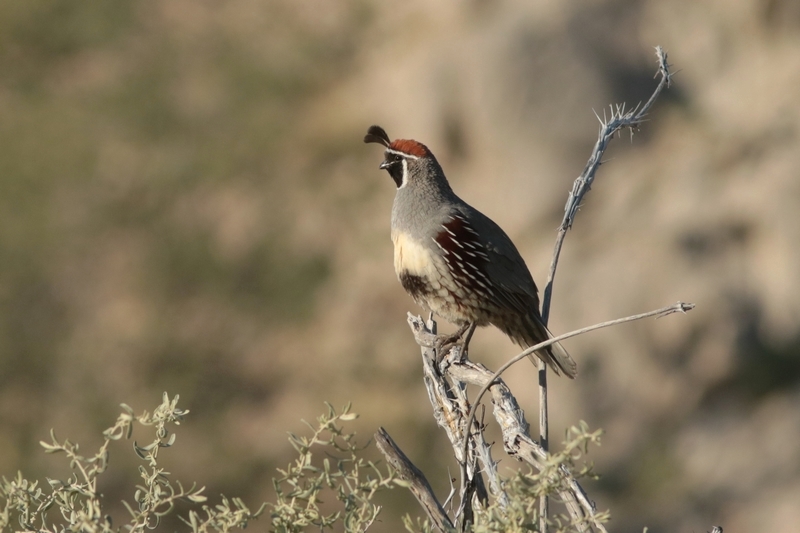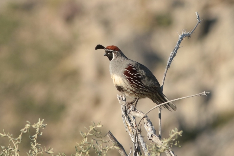 Pas de coches ici, il disfrute le Gambel's Quail (= Colin de Gambel),...