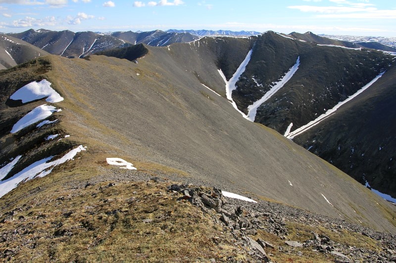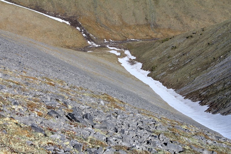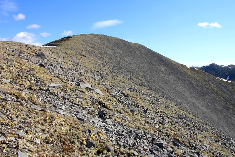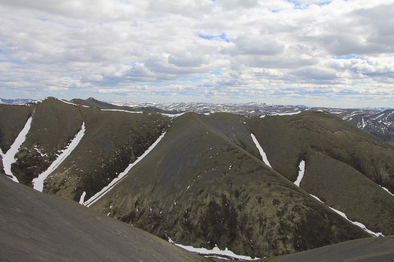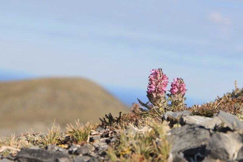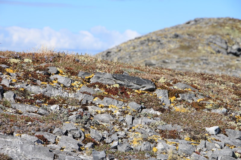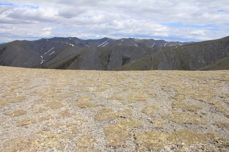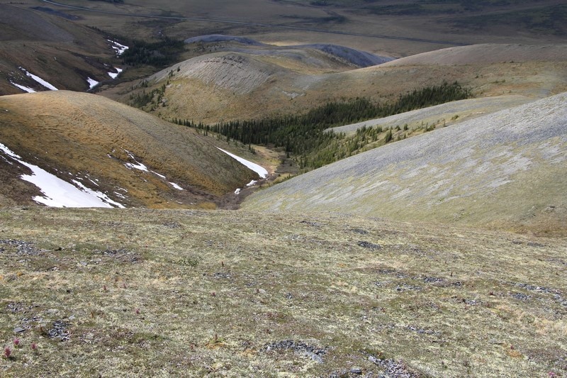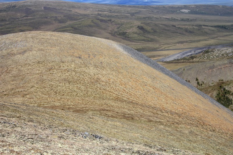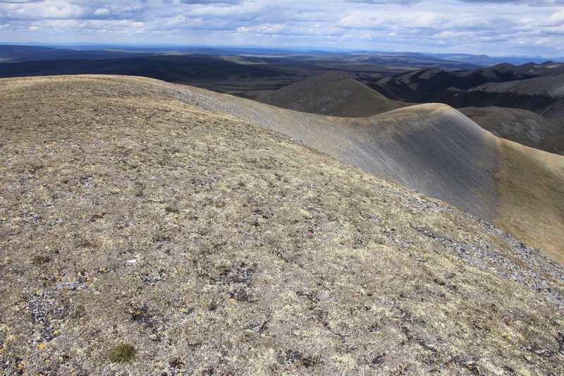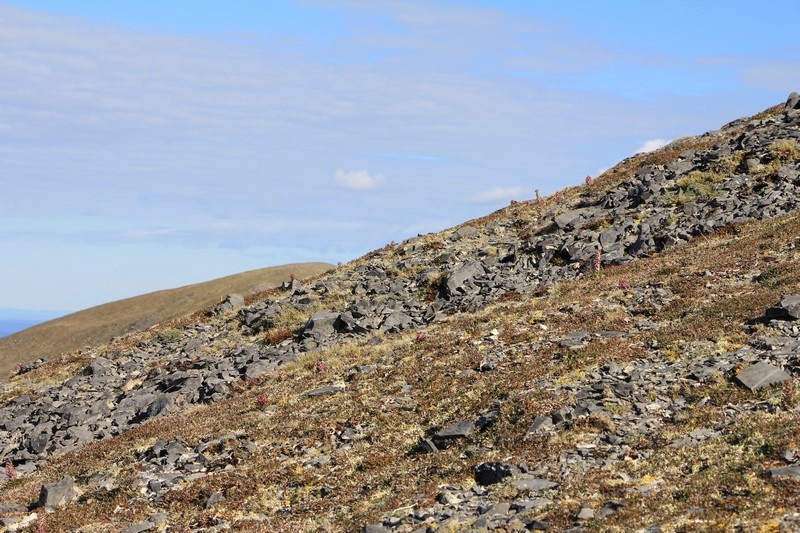 Il s'est fait énormément plaisir car les crêtes ne font que se succéder. Il aurait pu randonner toute la journée à disfruter ces jolies collines couvertes d'éboulis et de toundra parsemée de fleurs...