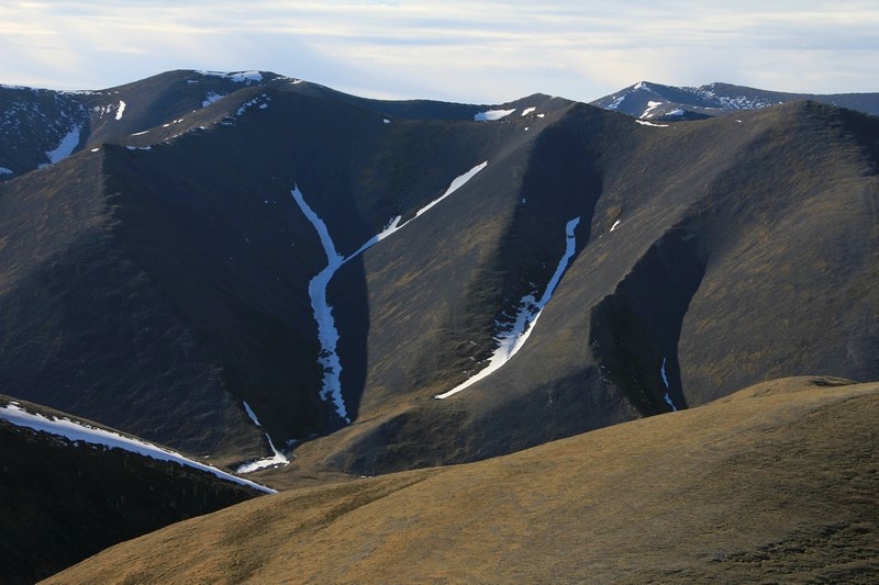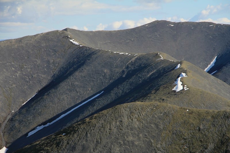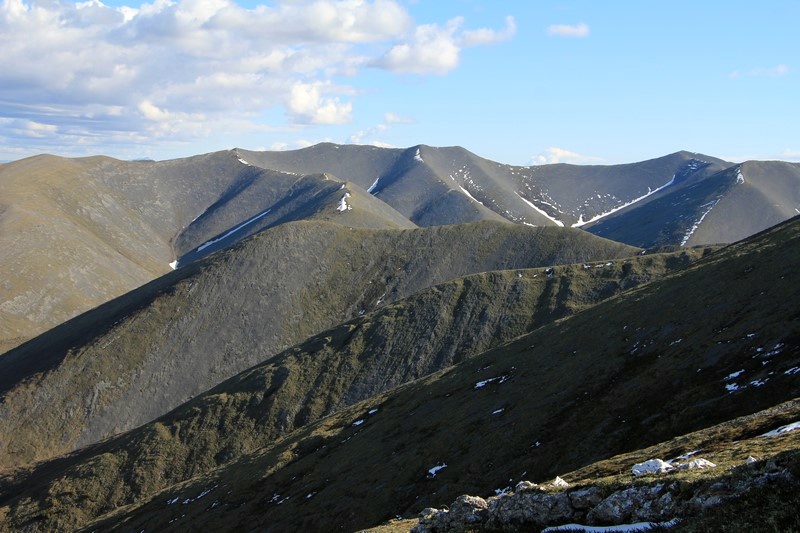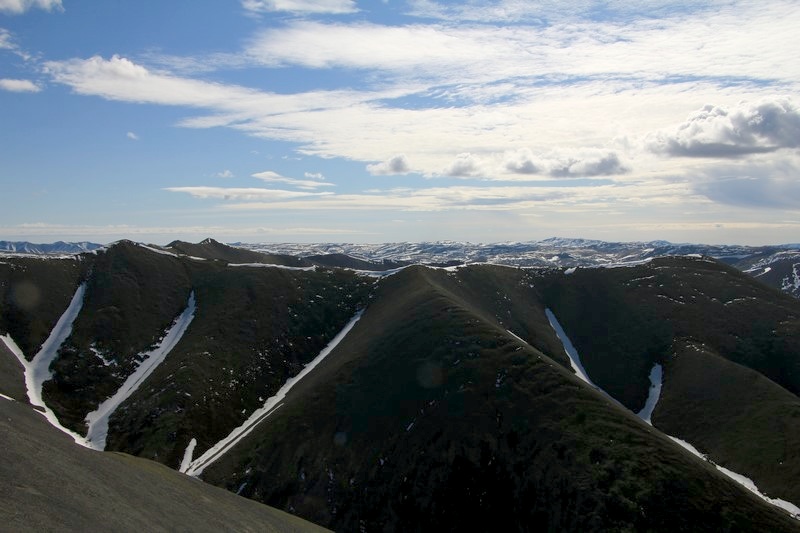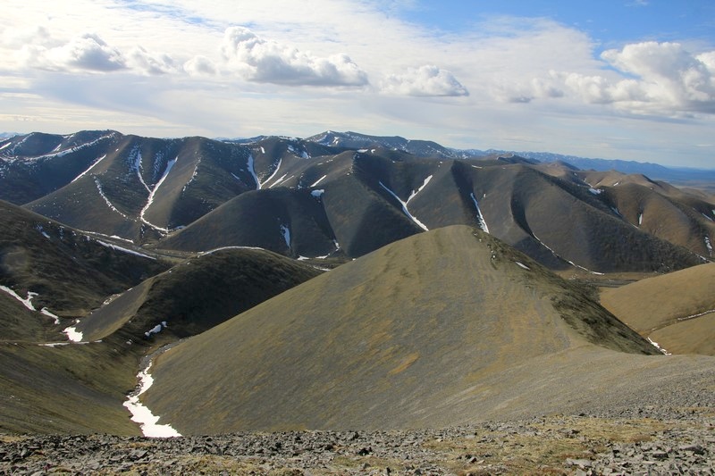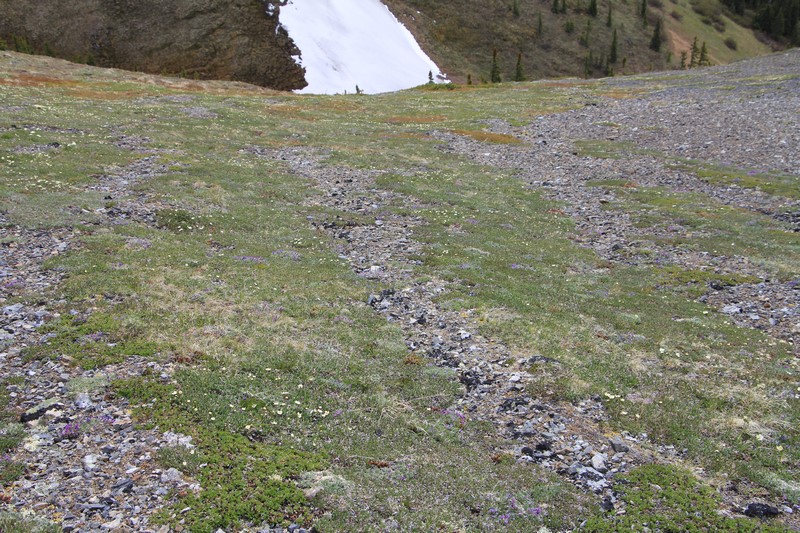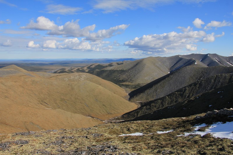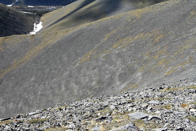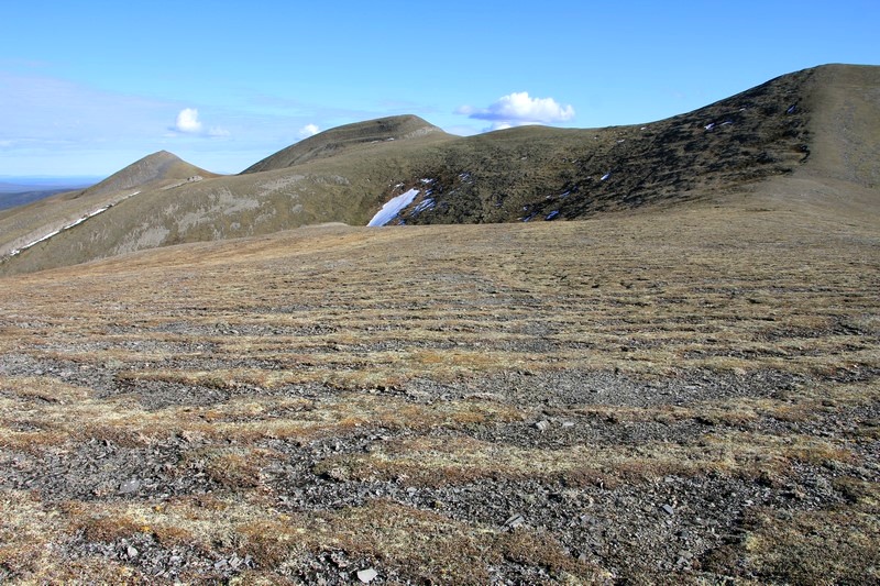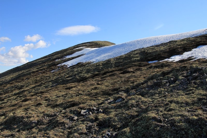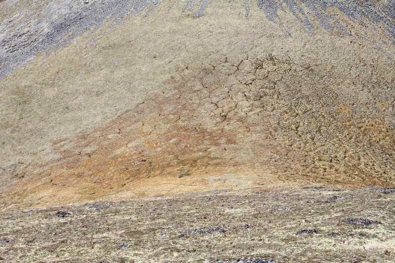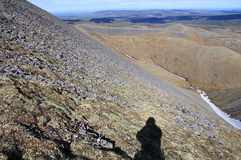 Il s'est fait énormément plaisir car les crêtes ne font que se succéder. Il aurait pu randonner toute la journée à disfruter ces jolies collines couvertes d'éboulis et de toundra parsemée de fleurs...