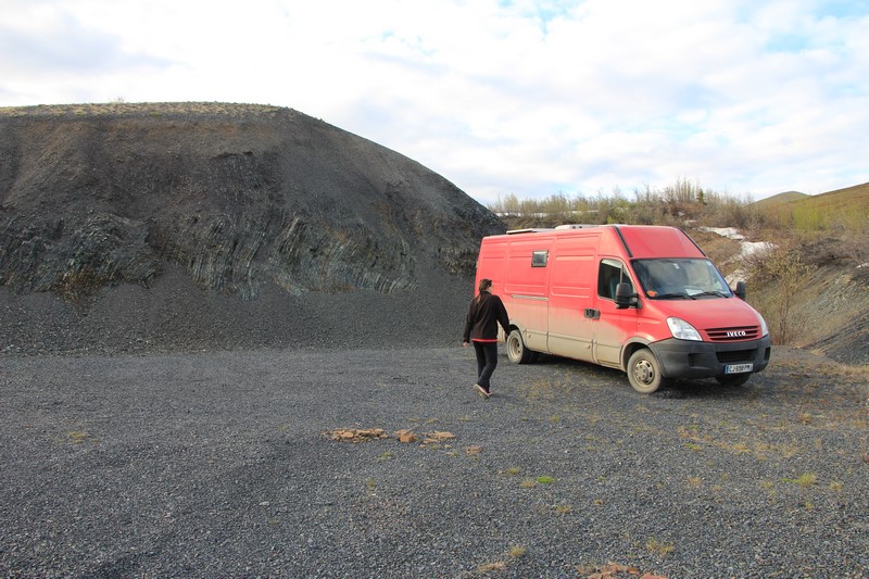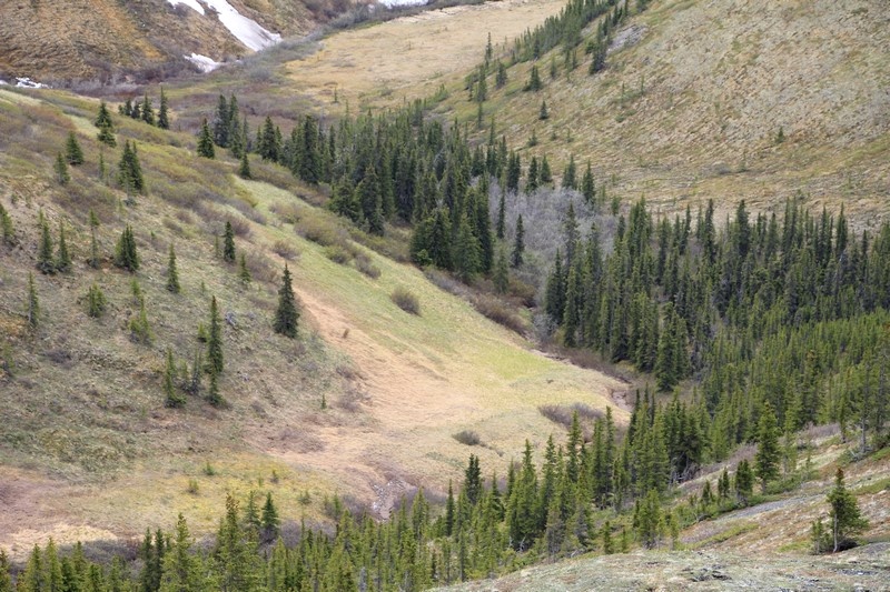 En milieu d'après-midi, on décide d'avancer de quelques km jusqu'à une carrière abandonnée (66.625879,-136.297536).