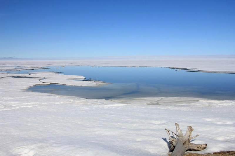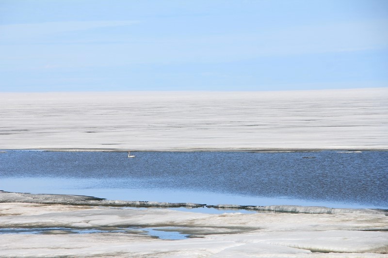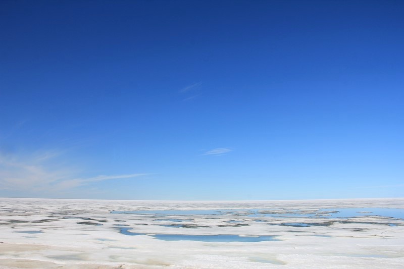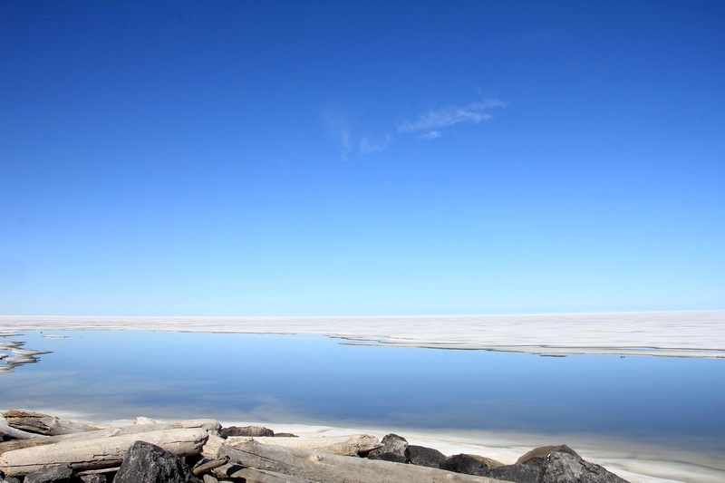 Depuis notre arrivée dans le Yukon, on nous dit que le printemps à 15 jours de retard et ça se sent d'autant plus ici entre vent froid et océan gelé.