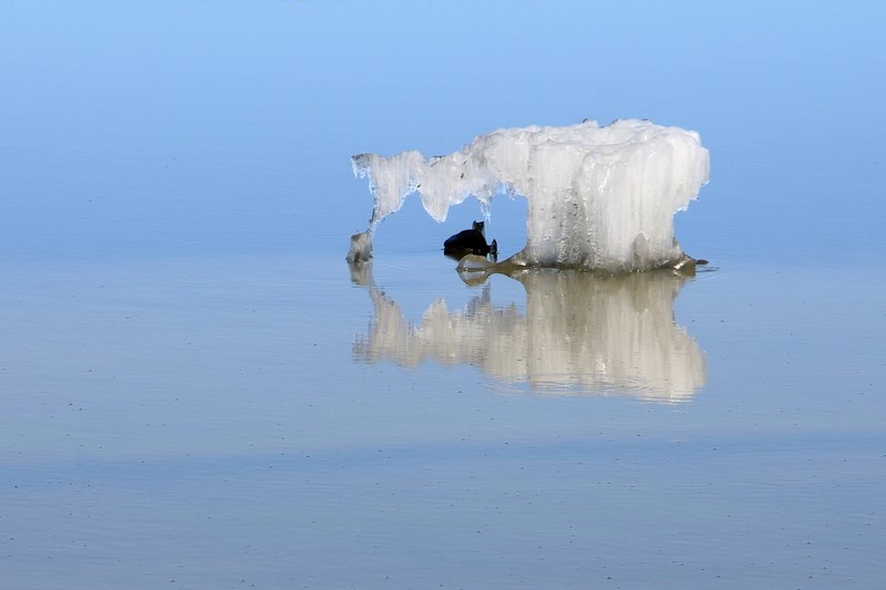 Et pour varier des animaux, l'avancée de la glace sur la berge.
