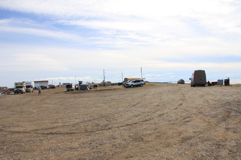 4x4 cellules, fourgons, motos, vélos et même marcheurs arrivent à La Pointe pour se prendre en selfie devant l'Océan Arctique.