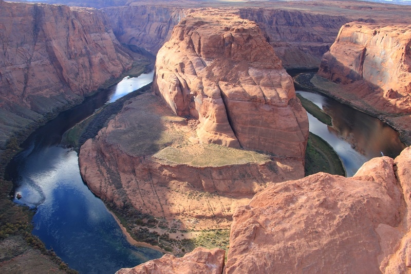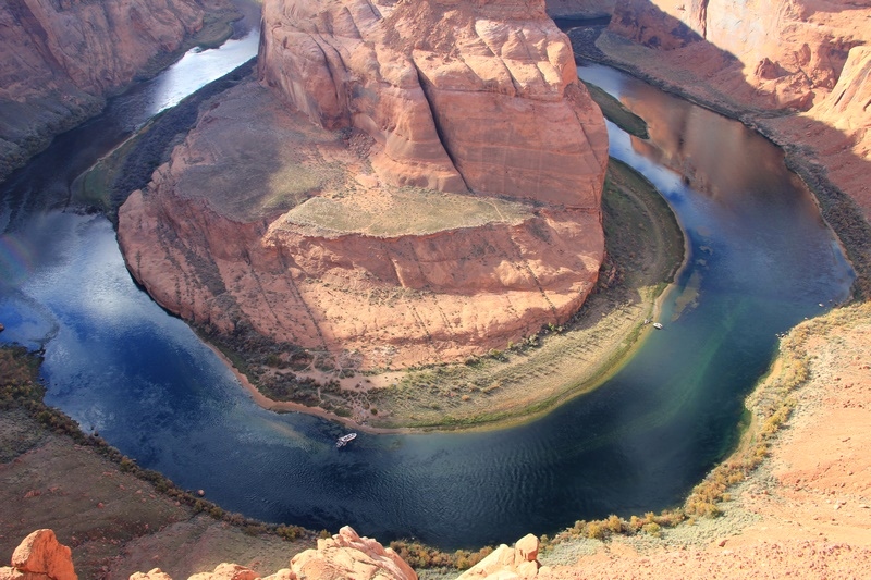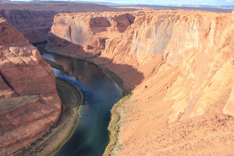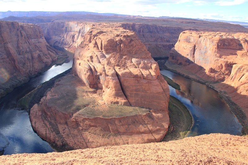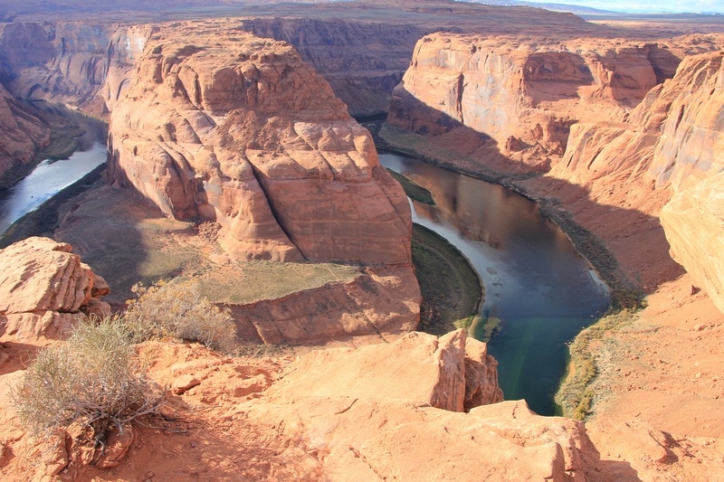 En milieu d'après-midi, on sort de la ville pour se diriger quelques km au sud à Horseshoe Bend (36.880141,-111.510667), célèbre canyon en forme de fer à cheval gratuit d'accès (mais plus pour longtemps...).