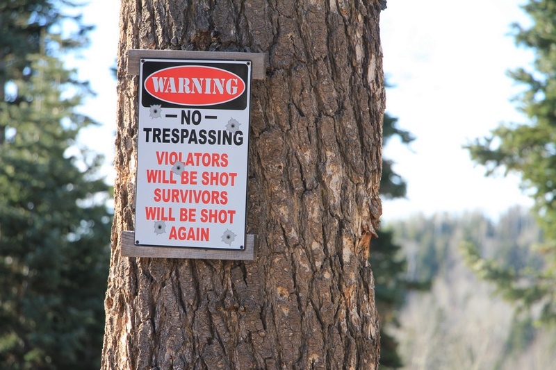 Il faut dire qu'en dessous est écrit en rouge "Violators will be shot survivors will be shot again", c'est à dire : les contrevenants seront abattus les survivants seront encore abattus.