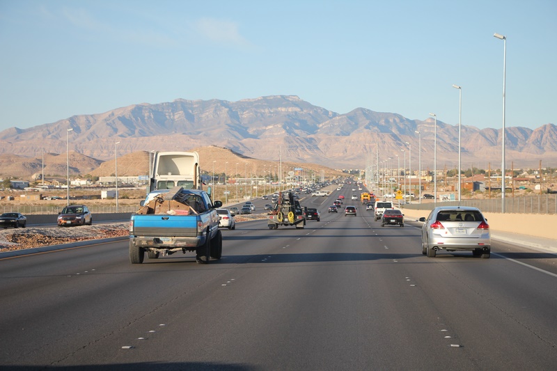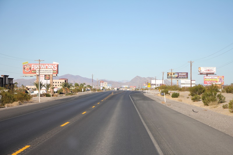 Nous entrons donc dans l'état du Nevada, avec ses déserts, ses fermes solaires et, 150km plus loin, Las Vegas.
