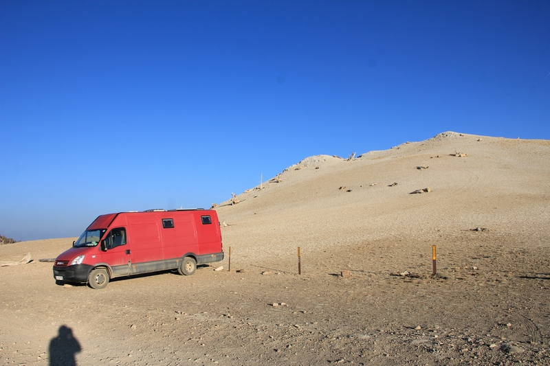 On trouve notre bonheur sur un parking (37.518767,-118.201335) sans panneau "No Overnight Parking" non loin de Patriarch Grove. Situé sur un replat à 3406m d'altitude, il a l'avantage d'être dégagé, ce qui est bien pour les panneaux solaires et chauffer le camion en journée. Par contre, à cette altitude, on se retrouve avec -04°C dans le camion le matin !