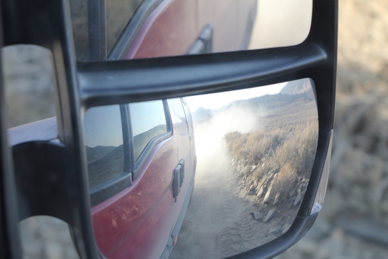 Plus de route, on a droit à une piste de tôle ondulée bien poussiéreuse. Mais bon, on ne se plaint pas. Elle est encore ouverte et le paysage est superbe.