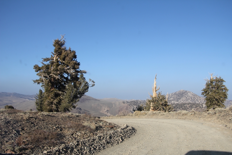 Nous prenons la route de bon matin pour monter encore de quelques centaines de mètres d'altitude et arriver enfin à l'Ancient Bristlecone Pine Forest.