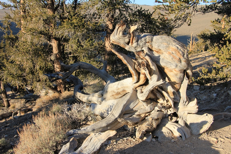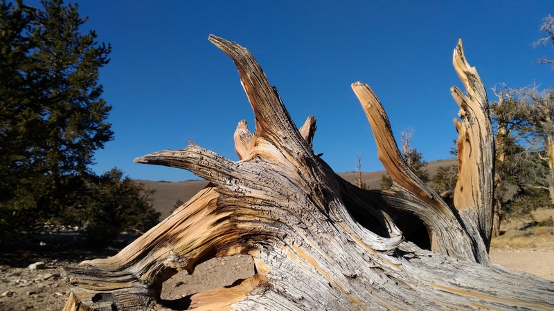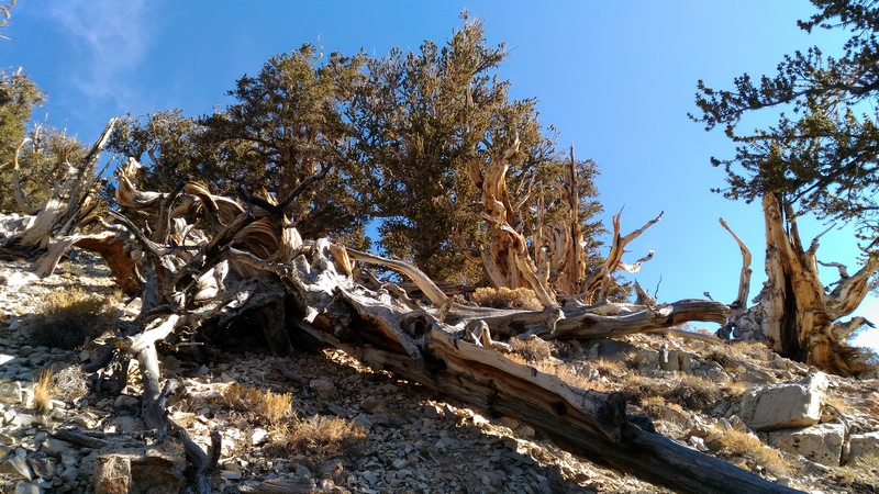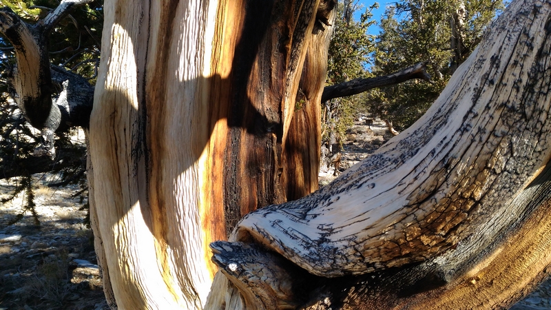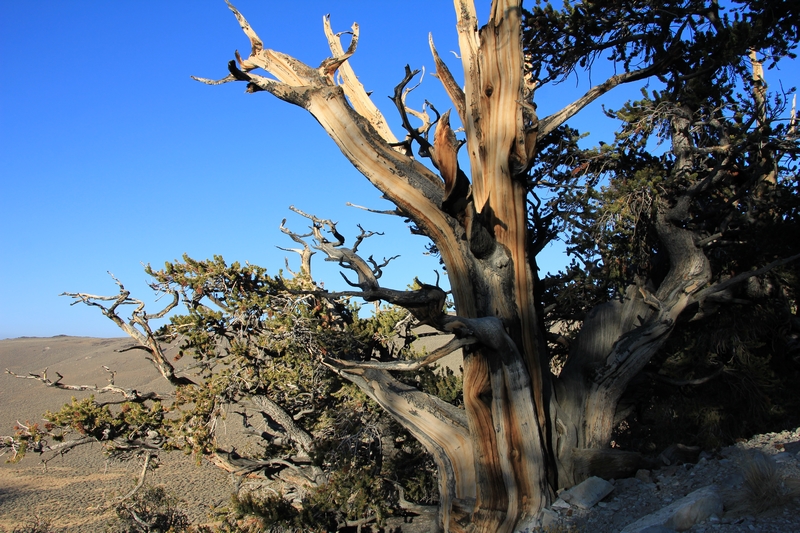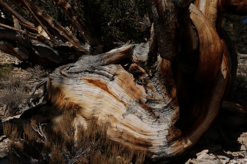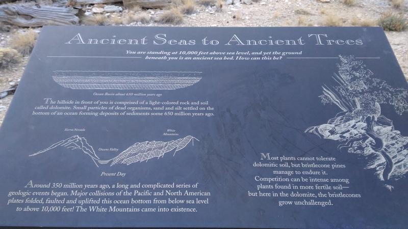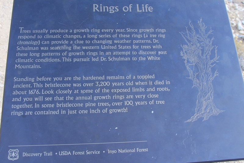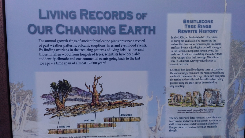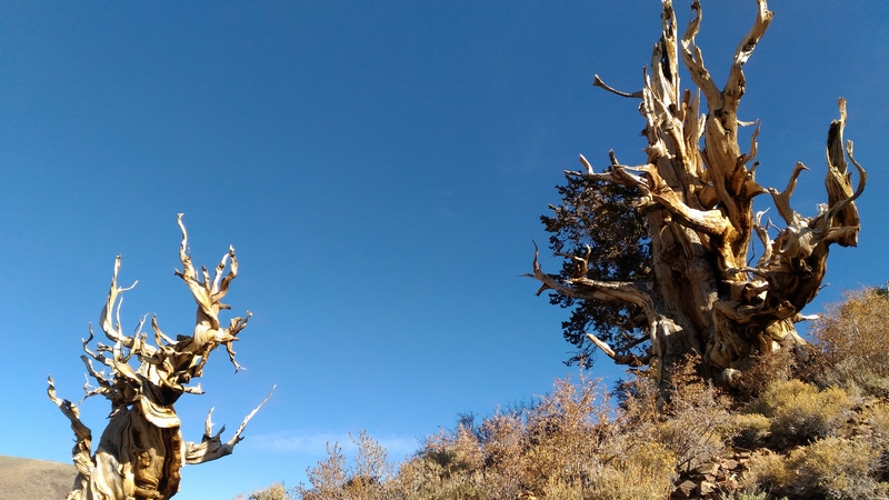 On commence donc par Schulman Grove (37.385579,-118.178962), dédiée au professeur de dendrologie Edmund Schulman qui fut le premier à dater ces arbres et qui identifia le Bristlecone Pine qui est l'arbre le plus vieux du monde, âgé de 4700 ans et surnommé Methuselah.