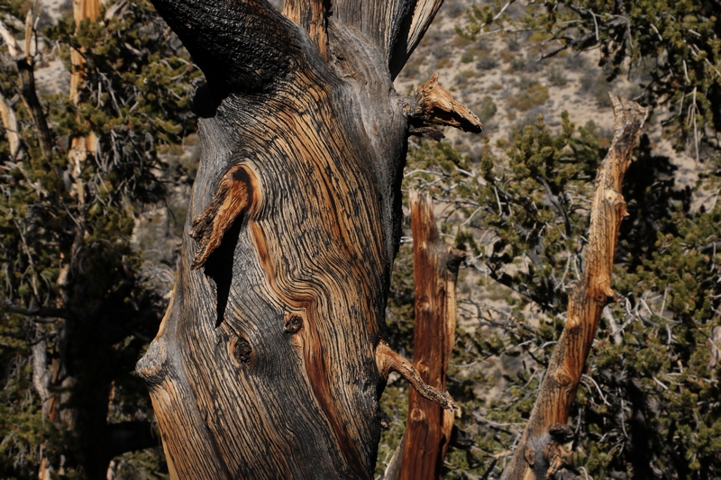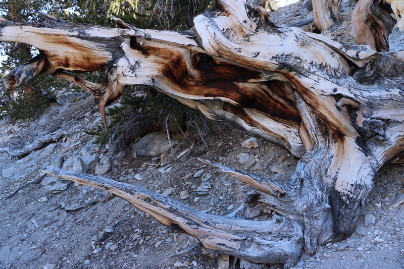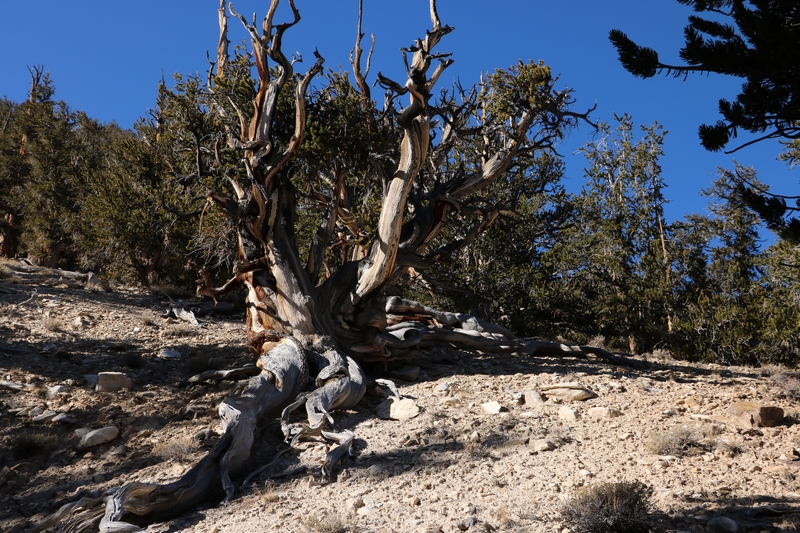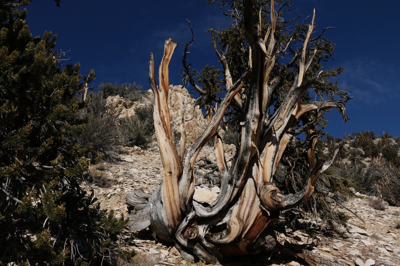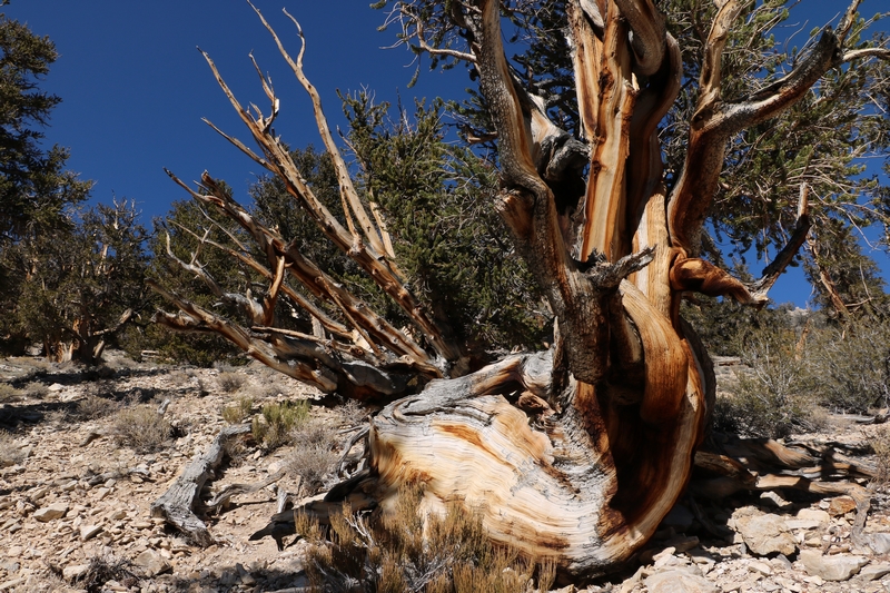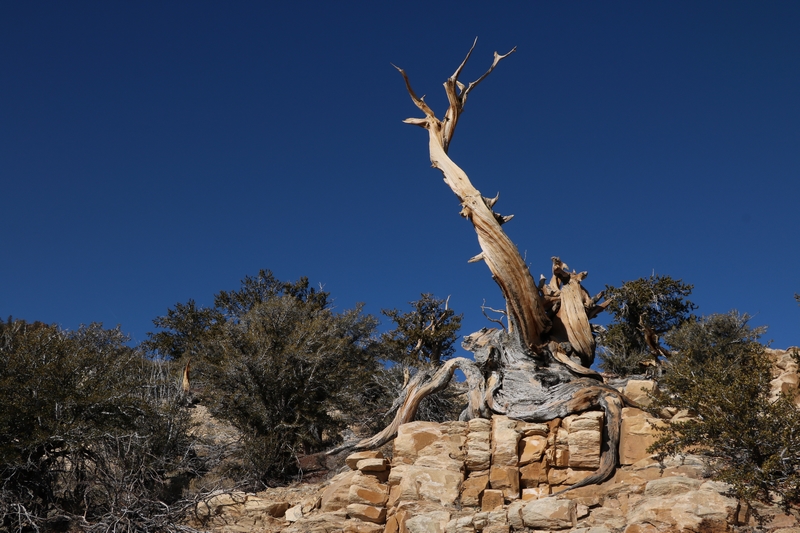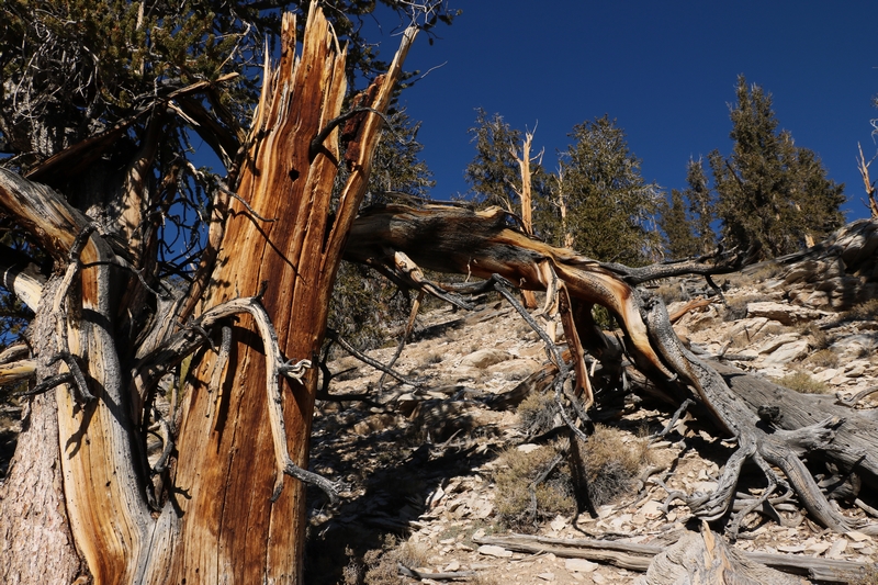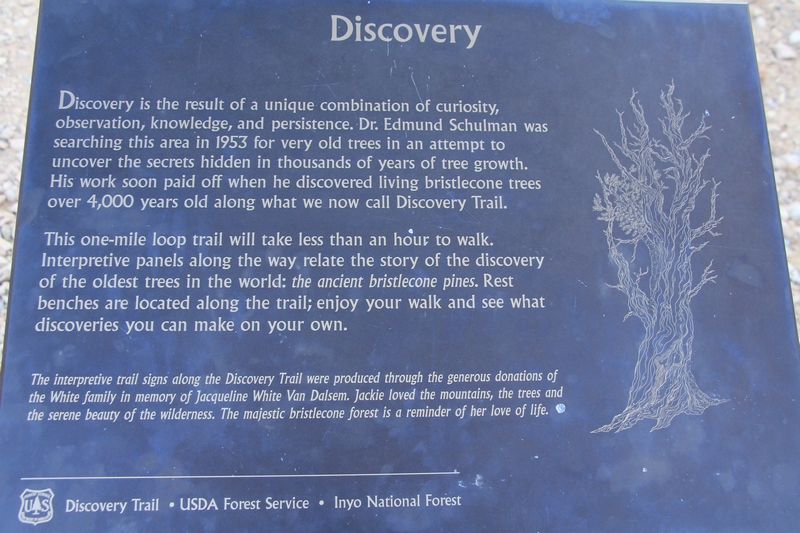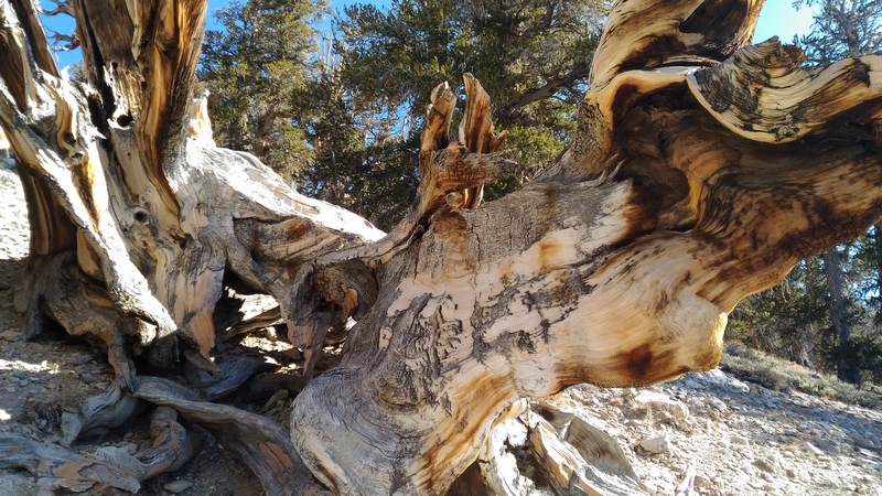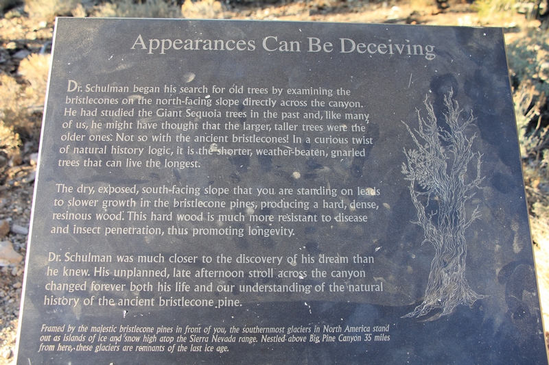 On commence donc par Schulman Grove (37.385579,-118.178962), dédiée au professeur de dendrologie Edmund Schulman qui fut le premier à dater ces arbres et qui identifia le Bristlecone Pine qui est l'arbre le plus vieux du monde, âgé de 4700 ans et surnommé Methuselah.