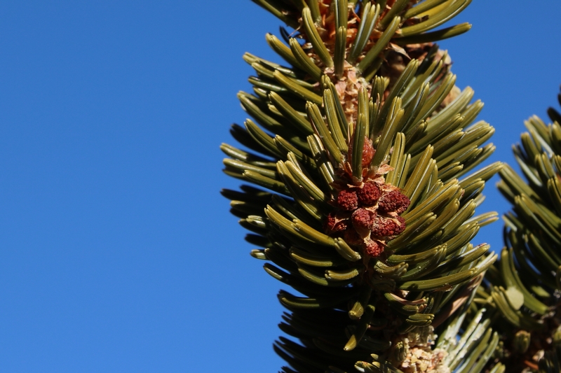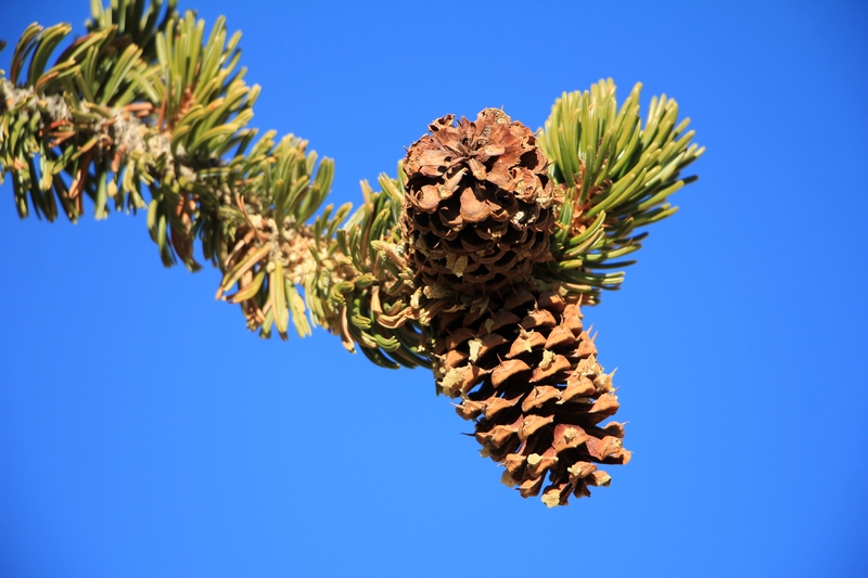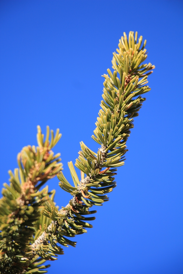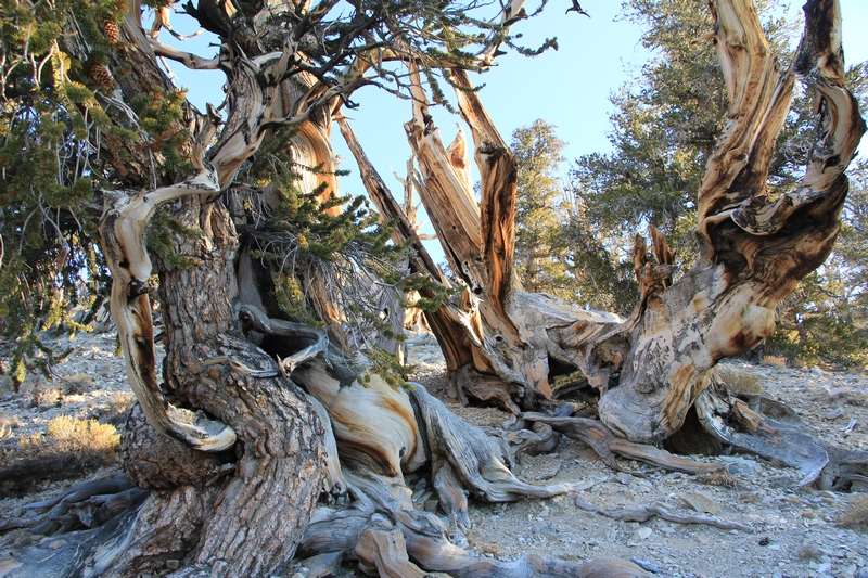 Ce n'est qu'en poussant sur les flancs de collines quasiment dépourvus de sol que ces pins vivent millénaires. Ils y acquièrent une forme caractéristique, tortueuse (ceux qui se développent dans des vallons avec plus de sol poussent comme des pins ordinaires mais vivent moins longtemps) et quasiment dépourvue d'épines (alors que la plupart des pins renouvellent leurs épines tous les 4 à 6 ans, les Bristlecone conservent les leurs pendant près de 40 ans !). À plus de 3000m d'altitude, la belle saison est courte, alors ils produisent un bois dense et résineux qui résiste aux attaques d'insectes et de champignons. Enfin, les Bristlecone Pines vivent avec une écorce extrêmement fine qui leur permet néanmoins de supporter leurs fonctions vitales.