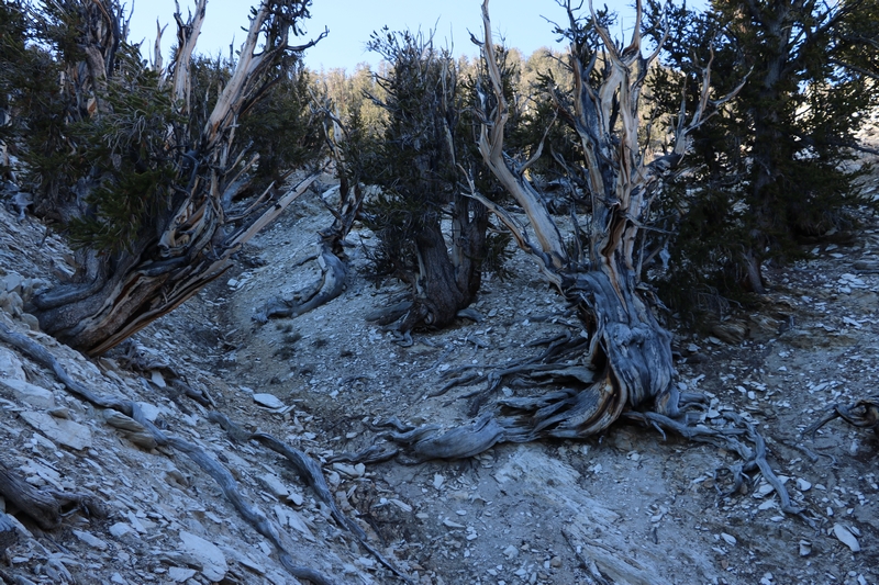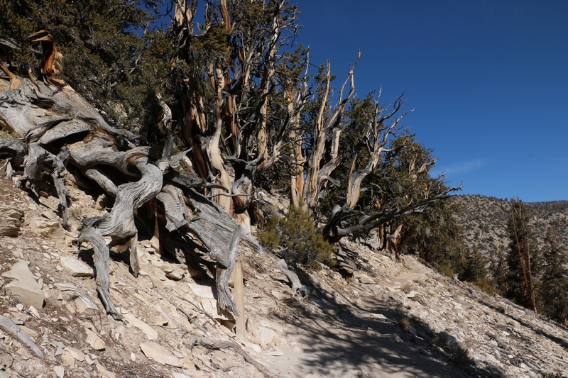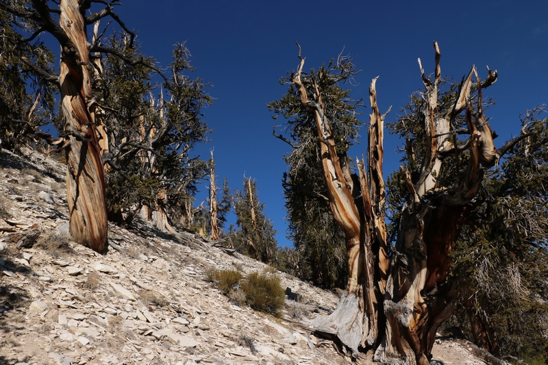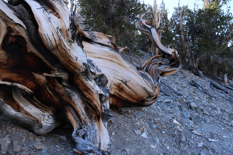 Les Bristlecone Pines se répartissent en petits patches de forêts. Babé pensait devoir marcher des heures pour pouvoir les atteindre, mais les américains ont bien fait les choses et deux des Groves sont accessibles avec plusieurs sentiers pour les visiter.