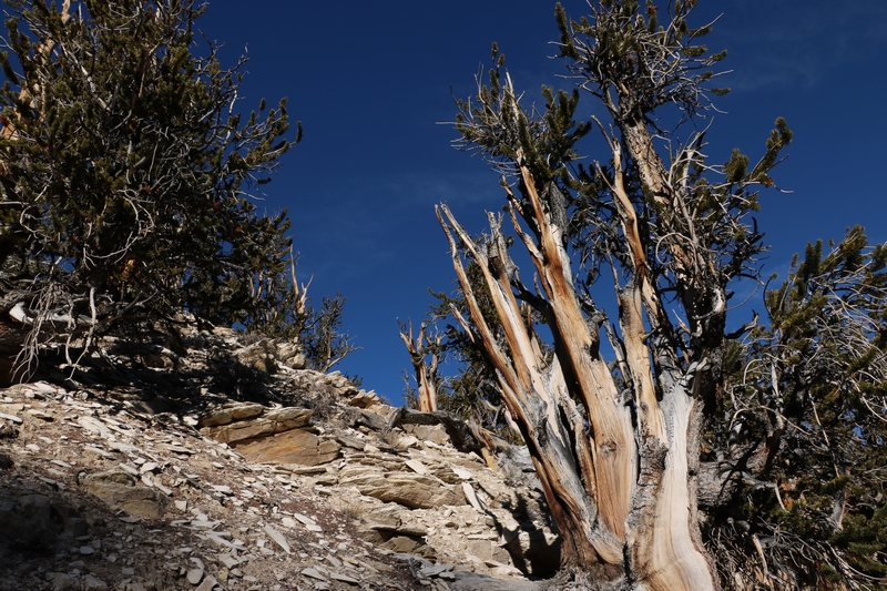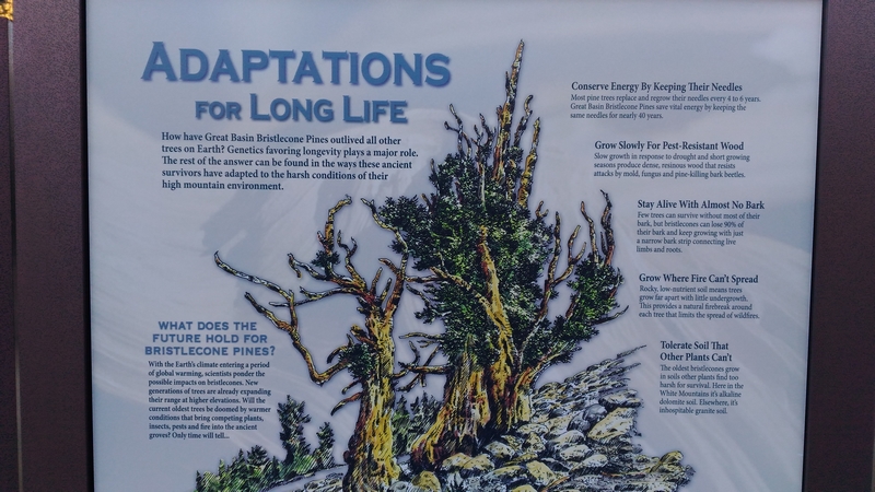 On y apprend que si ces arbres ont survécu aussi longtemps, c'est parce qu'ils ont su d'adapter à des conditions de vie très rudes : un climat sec, froid et venteux, et un sol sédimentaire alcalin constitué de dolomite sur lequel ils sont les seuls à se développer. Ajouté à cela un couvert végétal quasi inexistant qui empêche la propagation des incendies et vous avez des Bristlecone Pines qui vivent plus de 4000 ans.