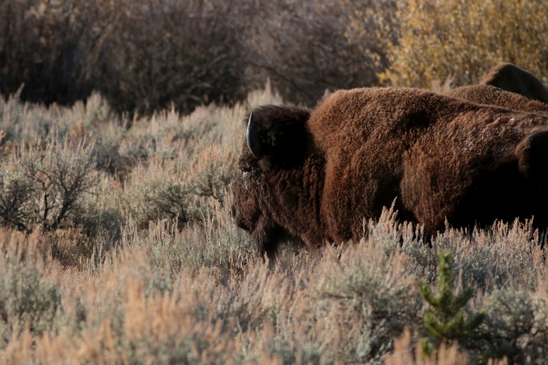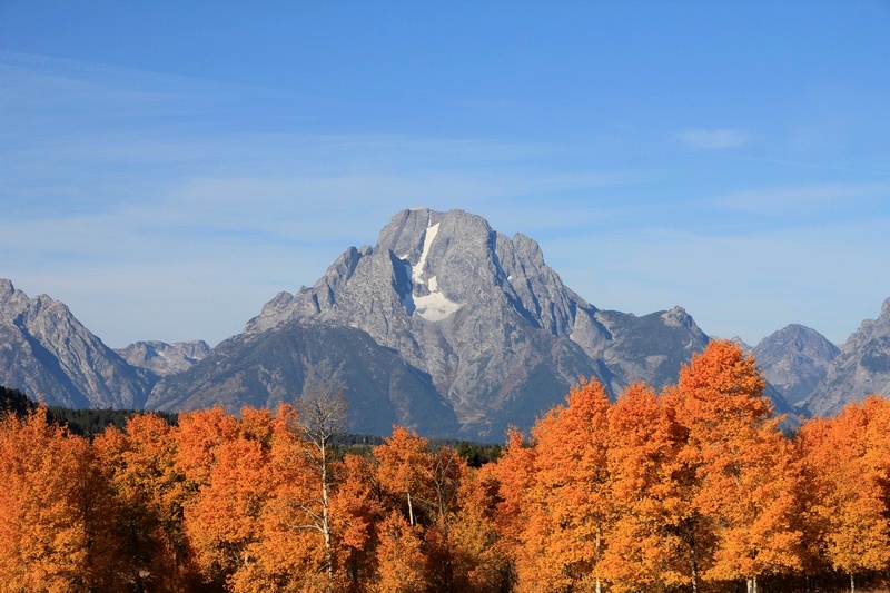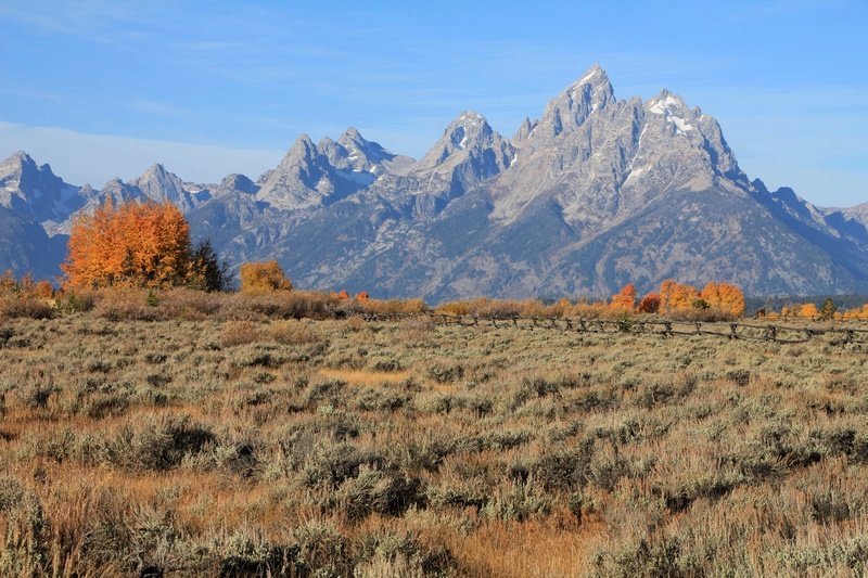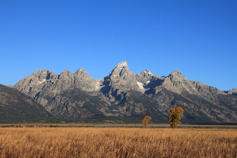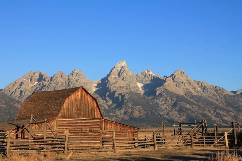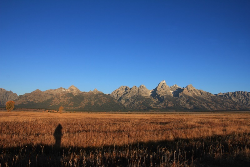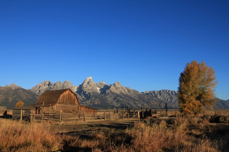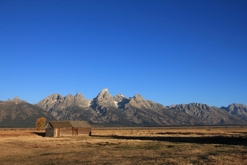 Il faut dire que le ciel est exceptionnellement dégagé ce matin et que la vue sur le Grand Teton est superbe. De plus, c'est le spot où faire la photo avec la cabane restaurée d'une famille de fermier du début du siècle... une photo assez connue... Mmouais...