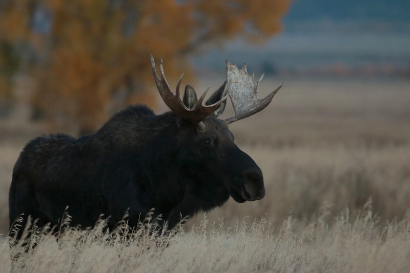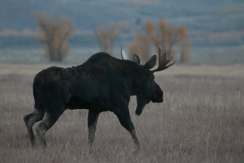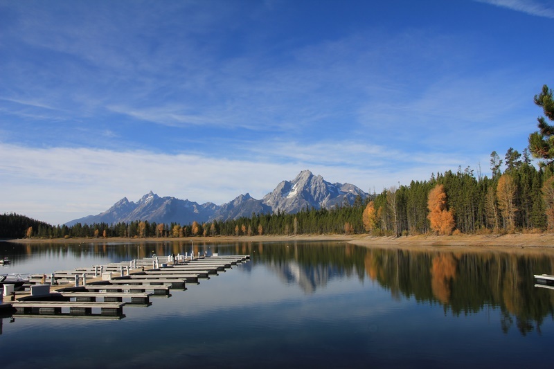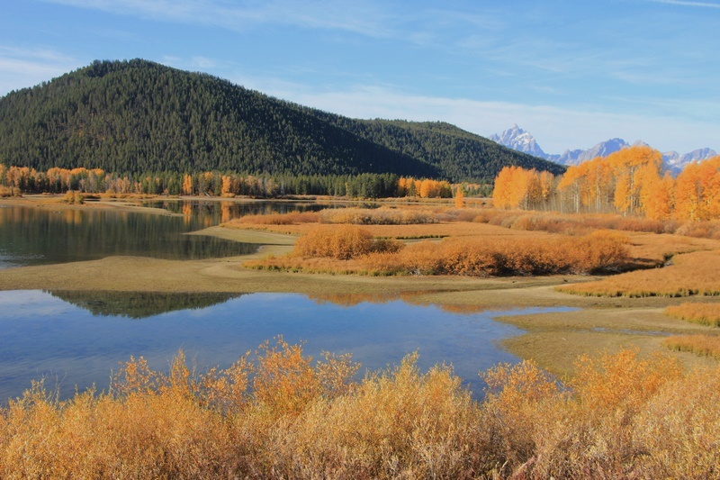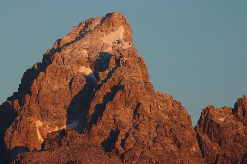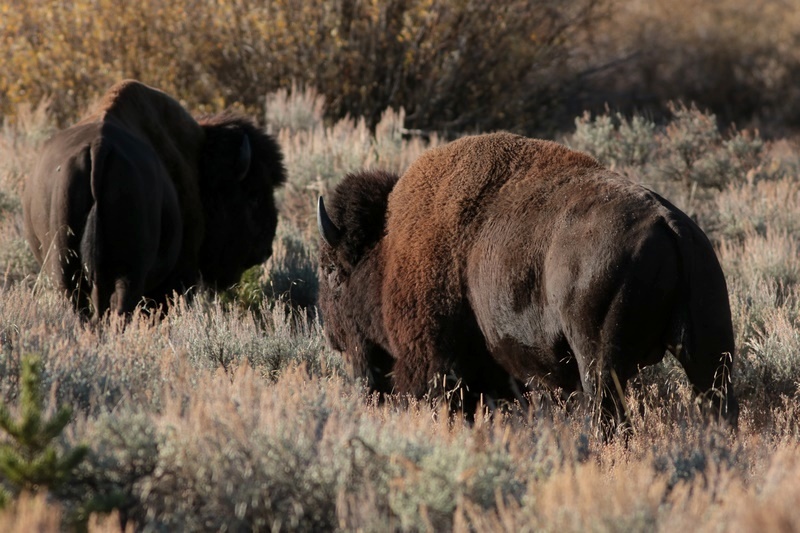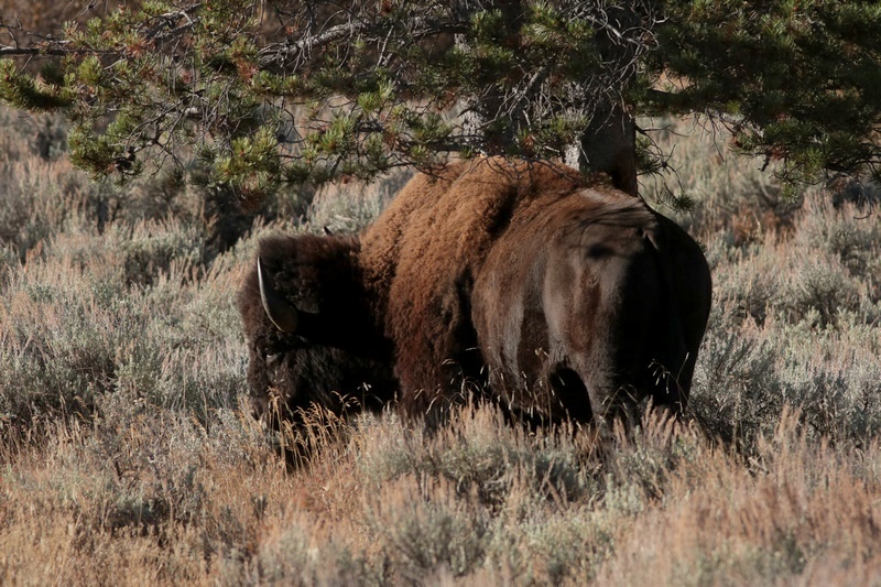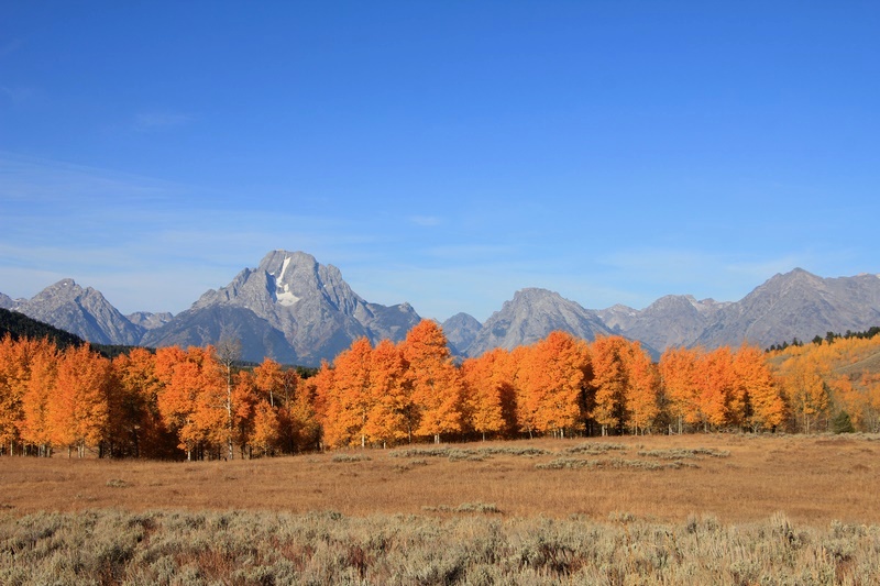 Il faut dire que le ciel est exceptionnellement dégagé ce matin et que la vue sur le Grand Teton est superbe. De plus, c'est le spot où faire la photo avec la cabane restaurée d'une famille de fermier du début du siècle... une photo assez connue... Mmouais...