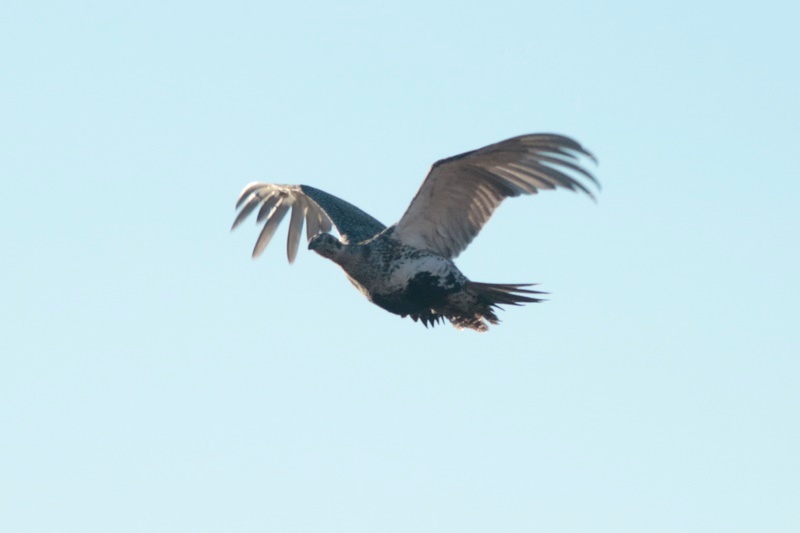 Les Grouse sont plus faciles à repérer au printemps lorsqu'elles paradent. Mais, coup de bol, une Greater Sage-Grouse se balade sur le chemin.