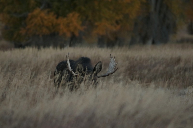 On vient juste d'arriver et le soleil n'est pas encore levé qu'on fait notre première chouette obs du matin : un Buck qui avance très rapidement, au loin, à la lisière des arbres.
