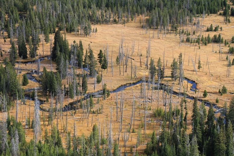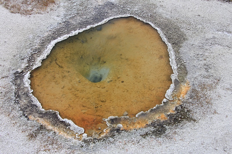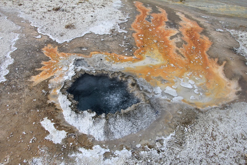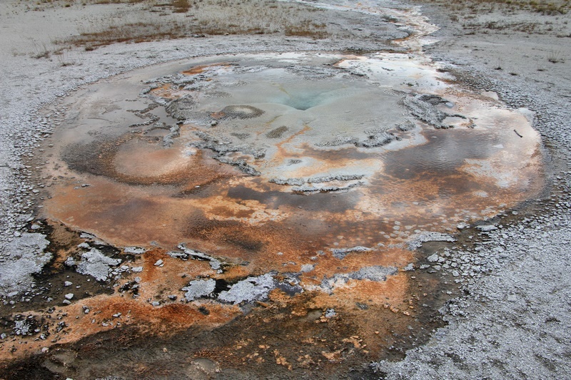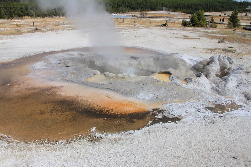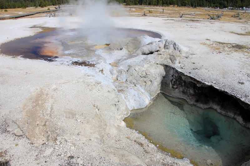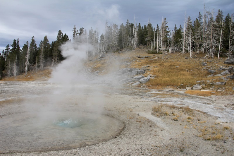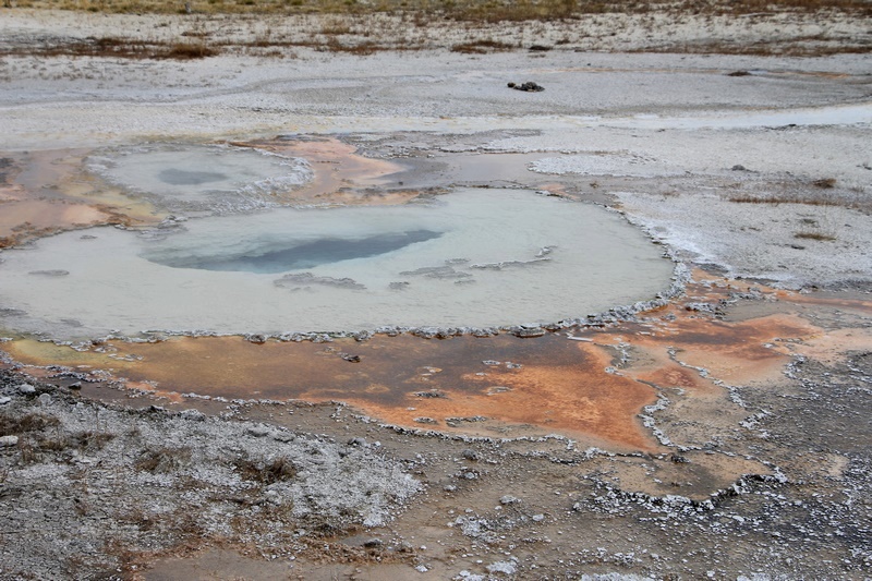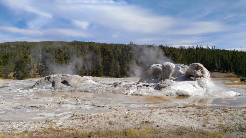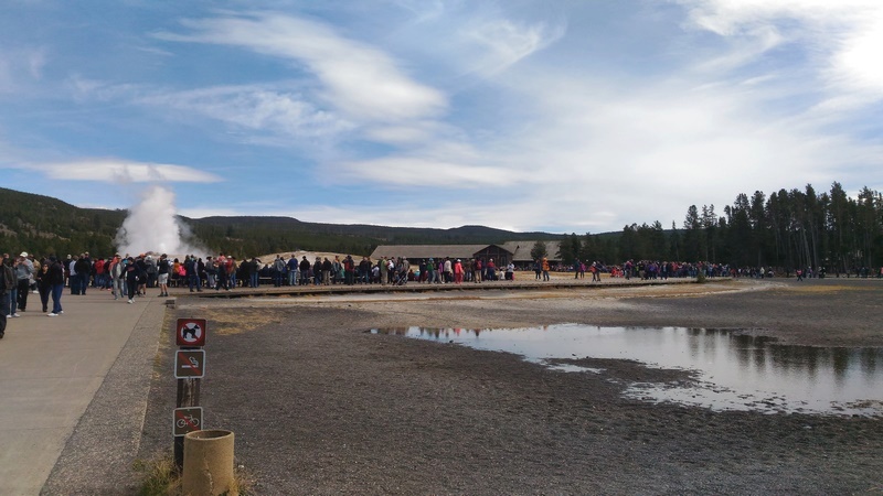 Il y a toujours autant de monde à Old Faithful, mais le temps n'est pas de la partie cette fois-ci. Trop de vent pour avoir des vidéos correctes. Je disfrute une nouvelle éruption du Grand Geyser, deux de Old faithful, fais quelques photos et retourne au camion.