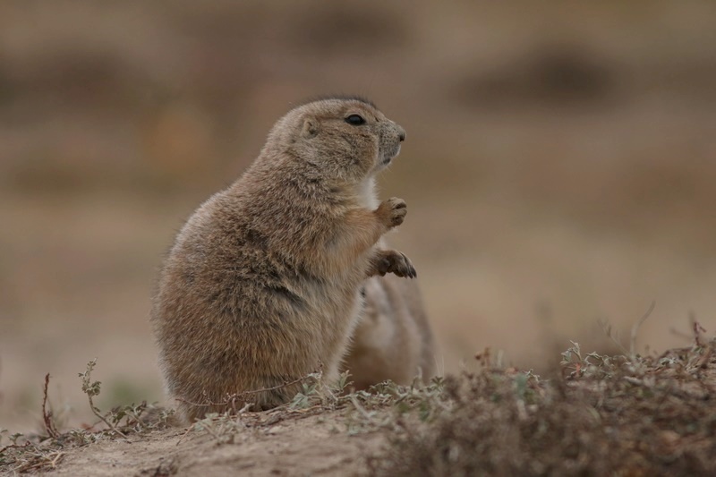 On prend cependant le temps de disfruter les chiens de prairies (= Prairie Dogs) en sortant du parc. Encore cachés dans leurs terriers à l'aller, on les retrouve actifs et en train de manger en repartant.