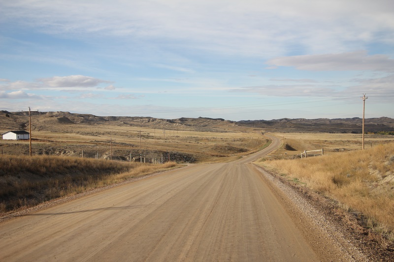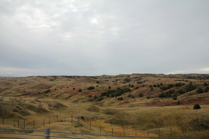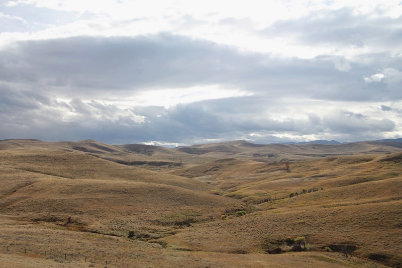 Cette partie du Montana n'a rien à nous offrir à part des collines pâturées et des champs sous un ciel gris et parfois pluvieux.