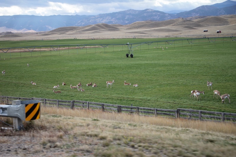 Parfois, on aperçoit quelques pronghorns, mais côté animaux sauvages, c'est tout ce qu'il reste à voir. La "Civilisation" a décimé le reste... pour le remplacer par des fermes et des vaches.