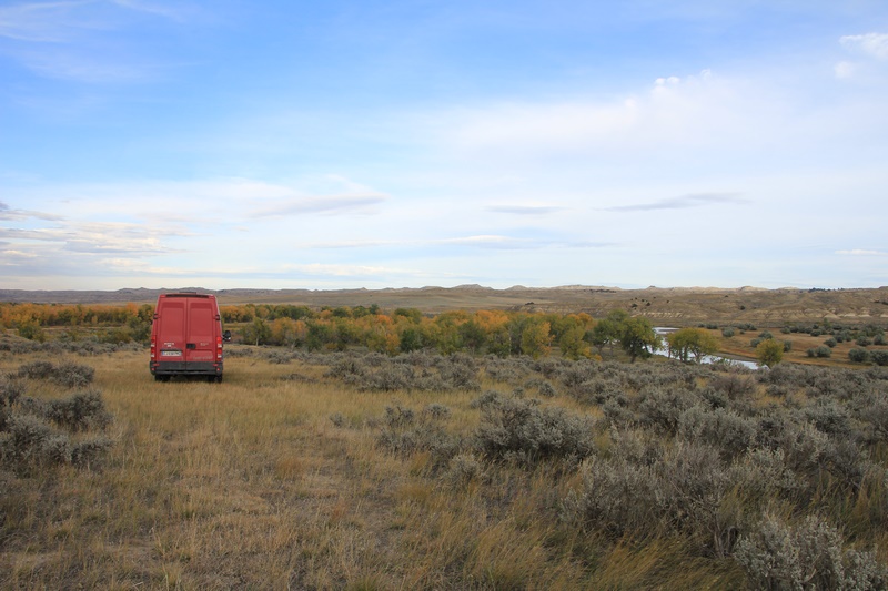 Pour le spot dodo, plutôt que de rester sur une petite aire de repos bruyante avec plein de panneaux "No Overnight", on tente notre chance sur la piste d'à côté et on tombe sur un Open Range qui à l'air libre d'accès comme son nom l'indique. On y croise des gens qui bivouaquent en tente. Alors, on se pose plus loin sur le premier spot où on ne risque pas de s'ensabler (44.245201,-106.156658).