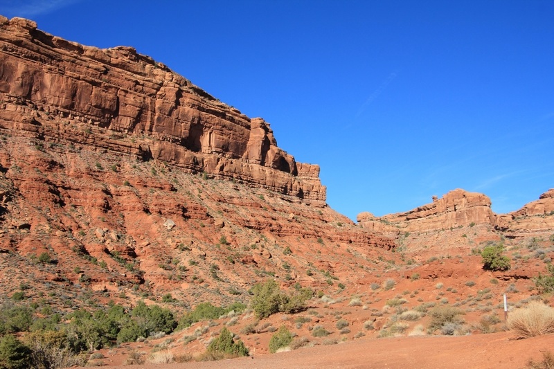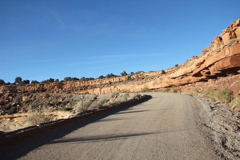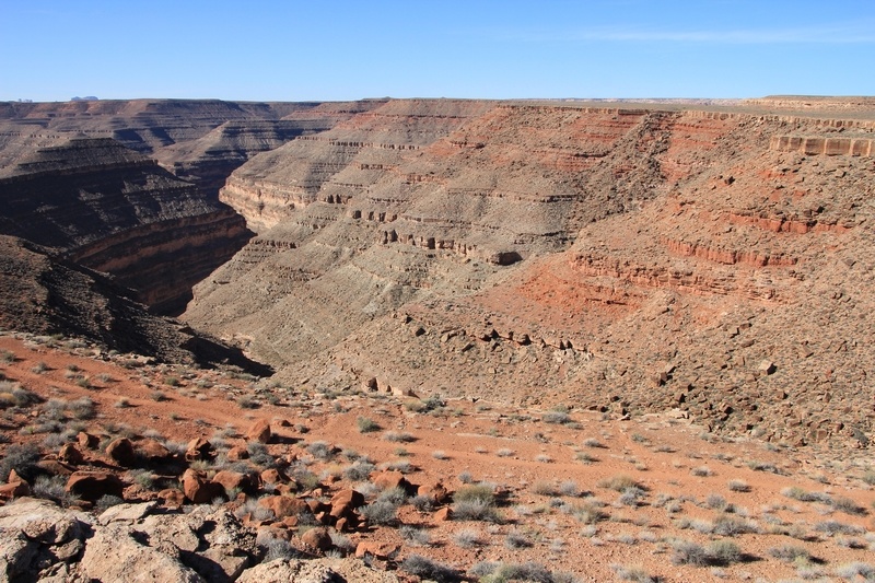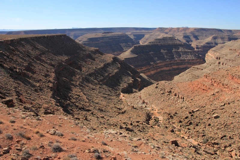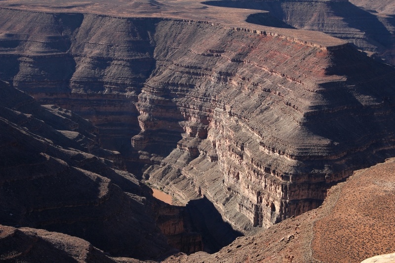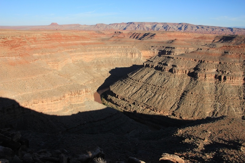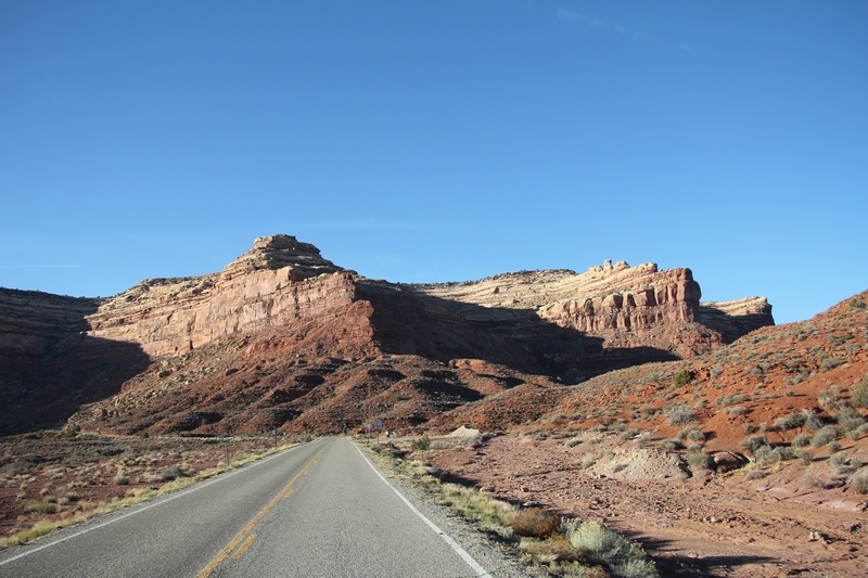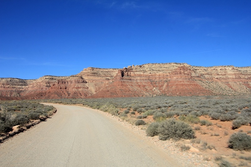Juste à côté se trouve le Goosenecks State Park (37.17485,-109.92624). Mais à 5$ l'entrée, on rebrousse chemin pour déjeuner en bord de piste un peu plus loin.