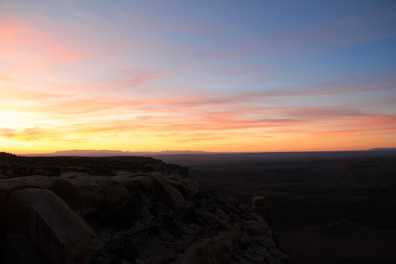 On se pose en bord de falaise (37.23857,-109.981543) avec sur une superbe vue sur la vallée.