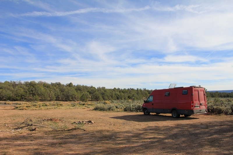 ... puis on se pose avant l'entrée du parc dans la Kaibab National Forest (35.978325,-111.795698).