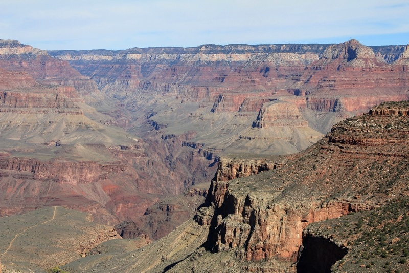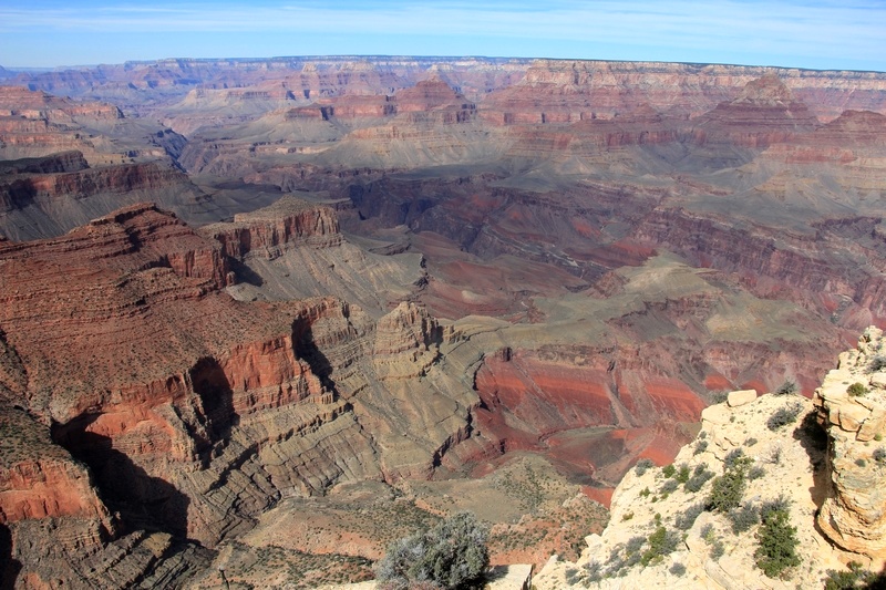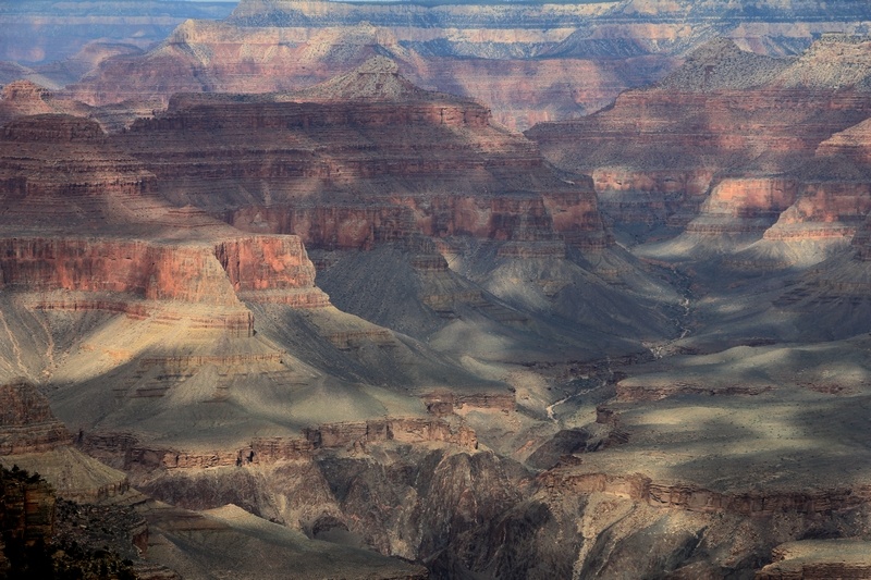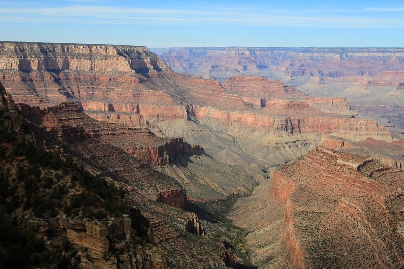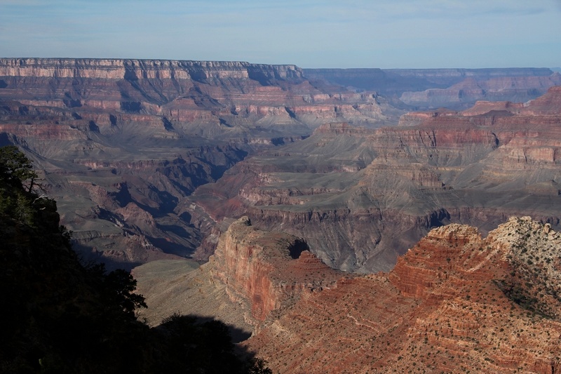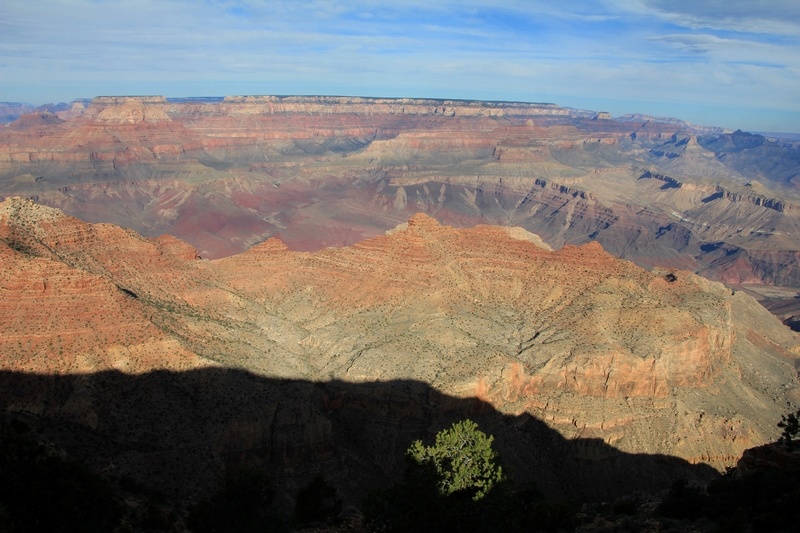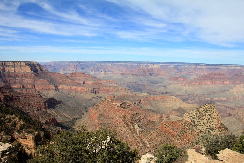 Le lendemain, on fait nos premiers pas dans le Parc National Grand Canyon en faisant des arrêts sur tous les points de vue en bord de route jusqu'à Grand Canyon Village.
