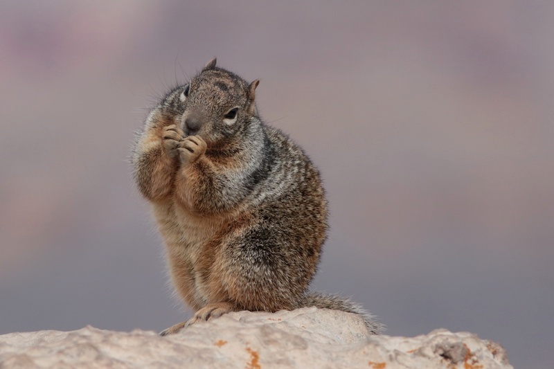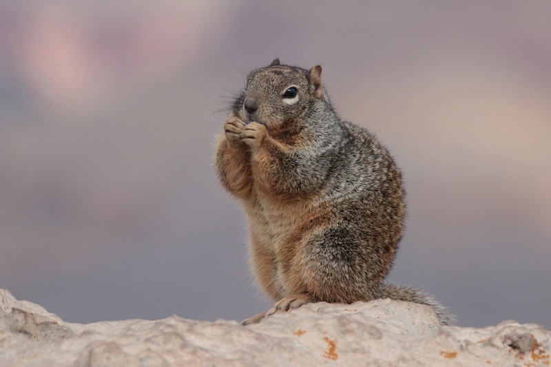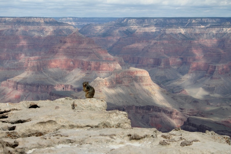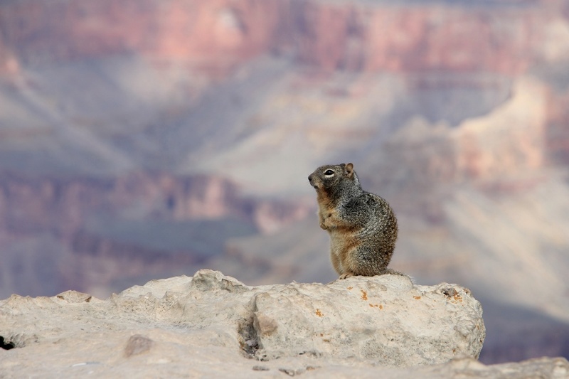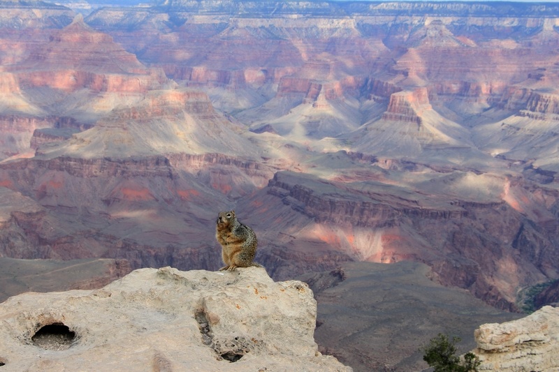 Il y voit un Rock Squirrel (écureuil des rochers) qui prend la pose devant l'abîme, ...