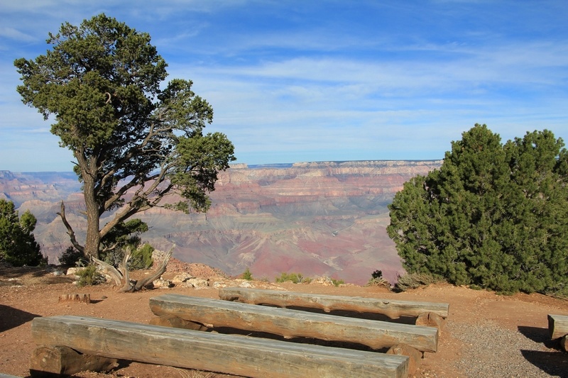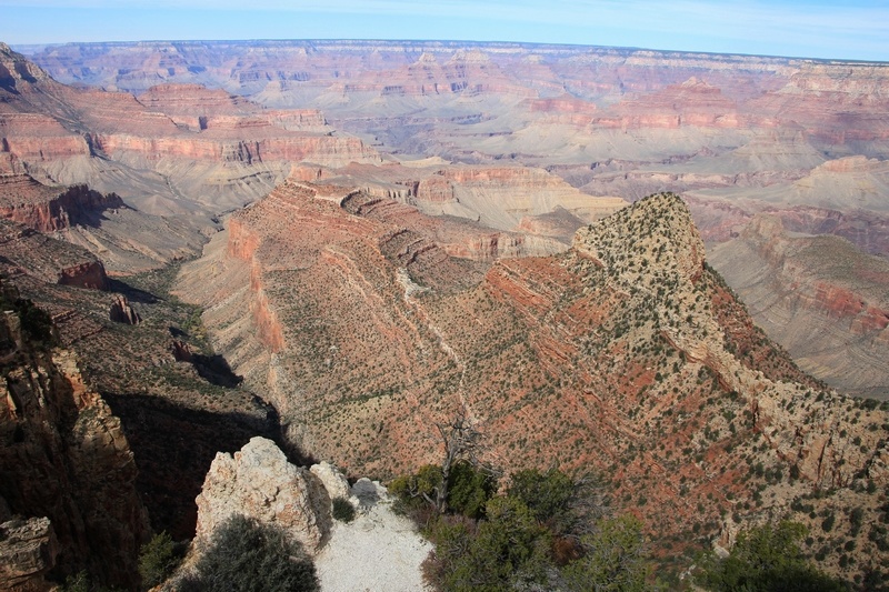 Ne pouvant se garer directement sur le Yaki Point, au départ du sentier, on se gare sur le parking d'un view point un peu avant (36.047355,-112.091539).