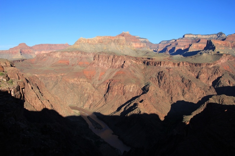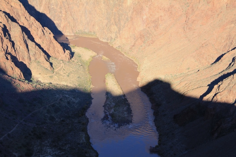 Arrivé en bas, il longe le Colorado pour remonter ensuite vers le Rim trail et le suivre jusqu'au camion. 38 km de balade, 1500m de positif, une carte mémoire remplie et à peine 9 heures pour boucler la balade. Fingers in the nose !