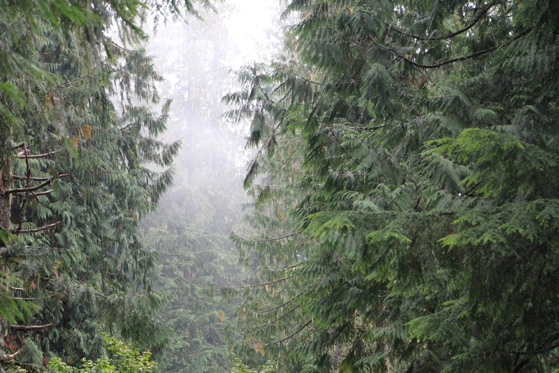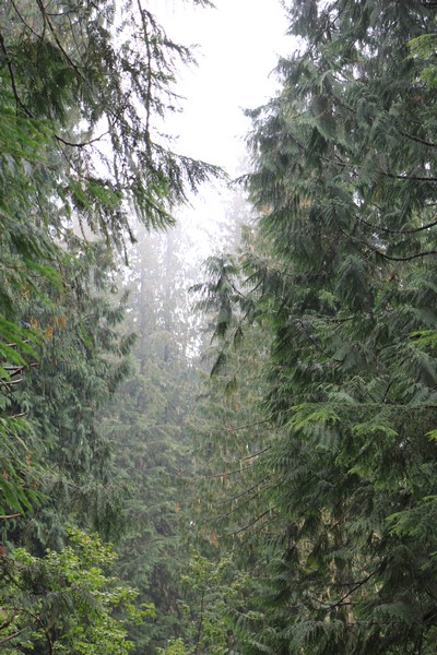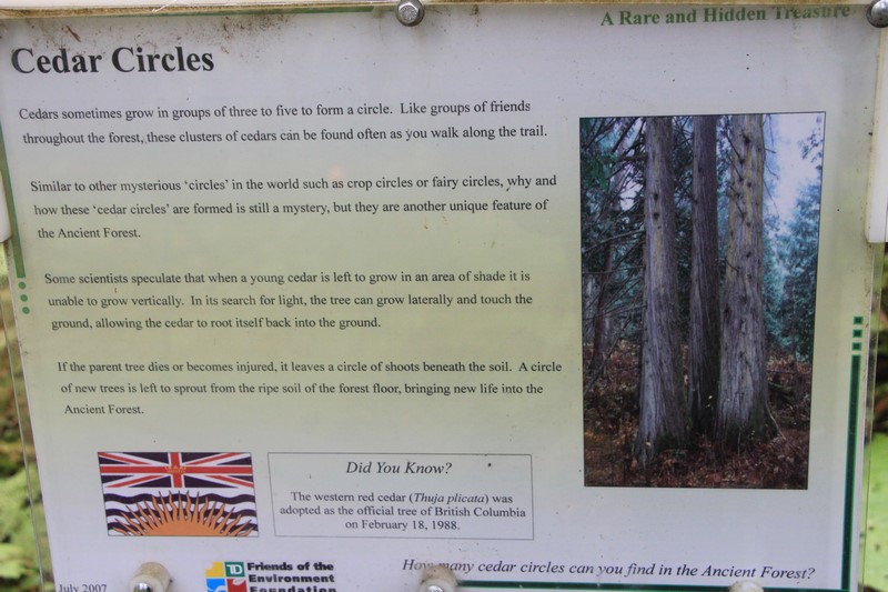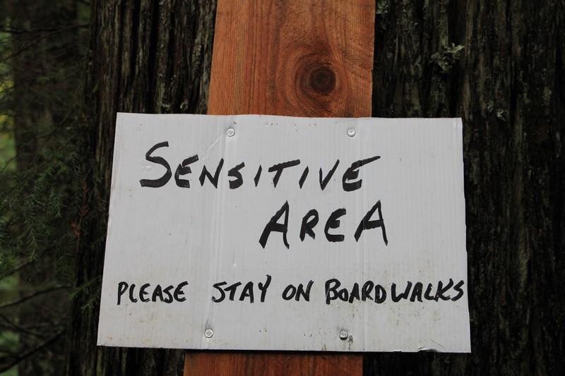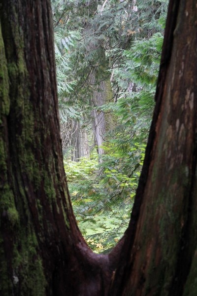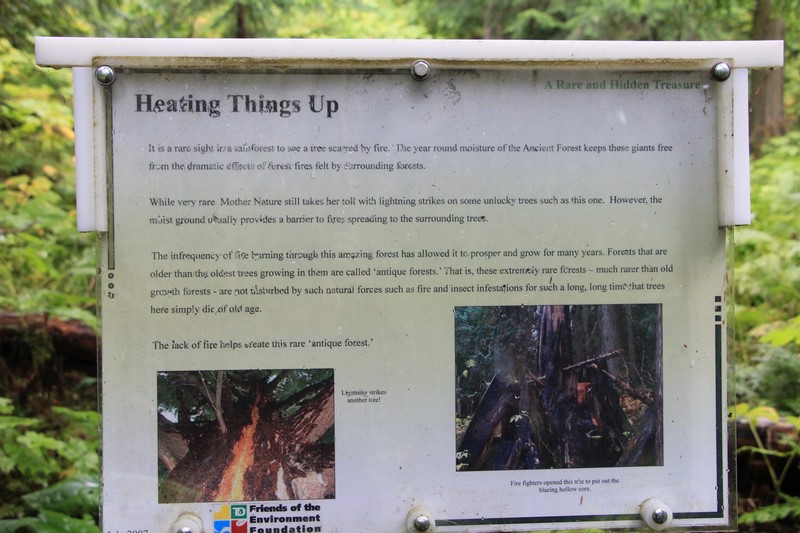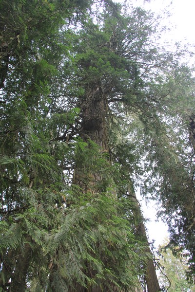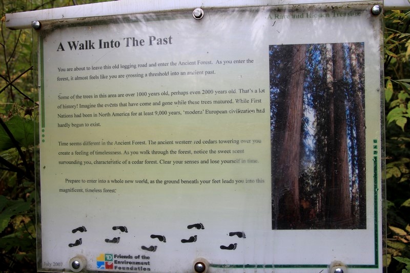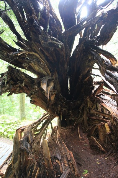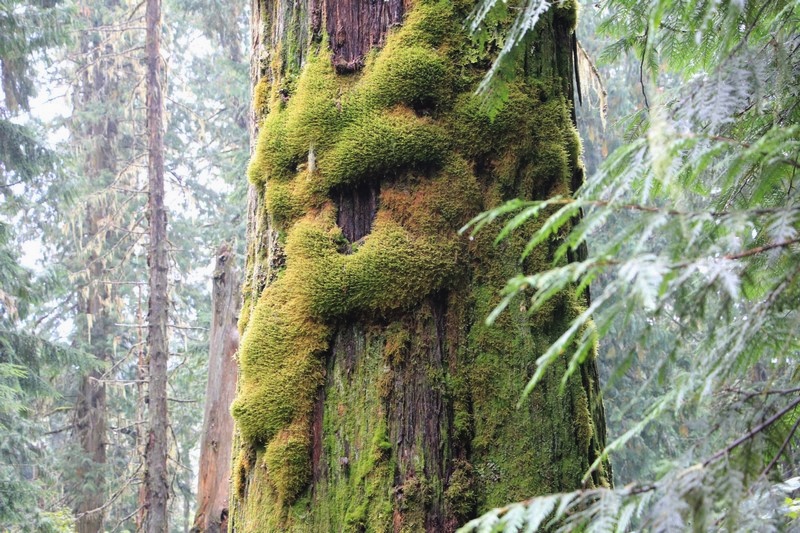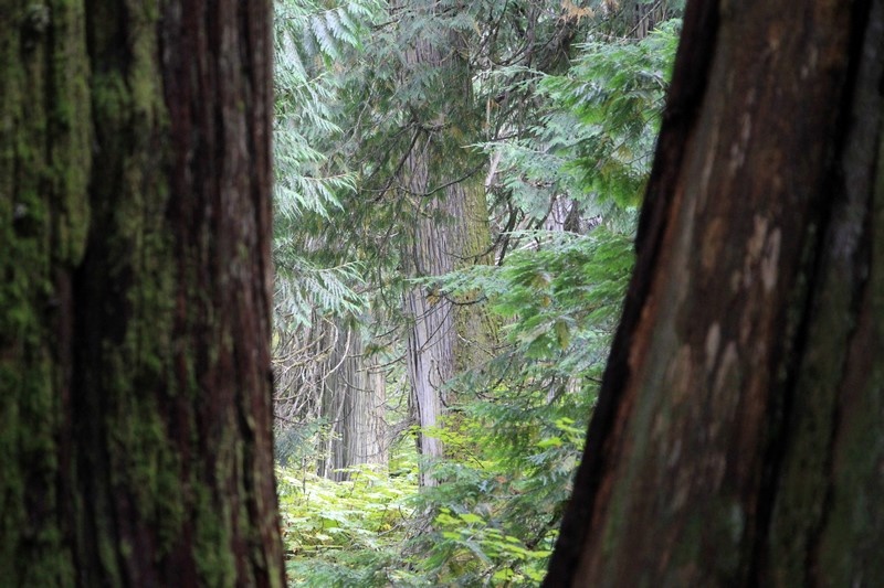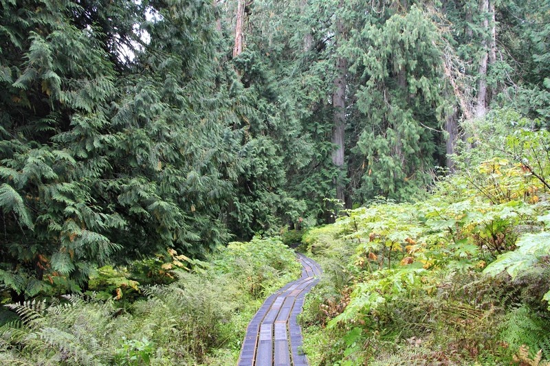 Parcourir le sentier de 2,5km, c'est plonger dans un monde humide aux fortes senteurs d'humus. Les énormes troncs des thuyas et des pruches vous entourent tel un cocon. On ralentit le pas, on respire plus lentement, on écoute la forêt.