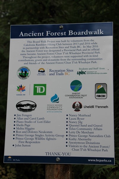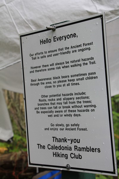 Il se trouve qu'aujourd'hui, c'est l'inauguration du Parc Provincial Ancient Forest. Le petit groupe de passionnés, qui a réussi à préserver cette portion de forêt humide intacte, a enfin eu gain de cause en obtenant le statut de parc provincial. Il y a donc beaucoup de monde sur le parking.