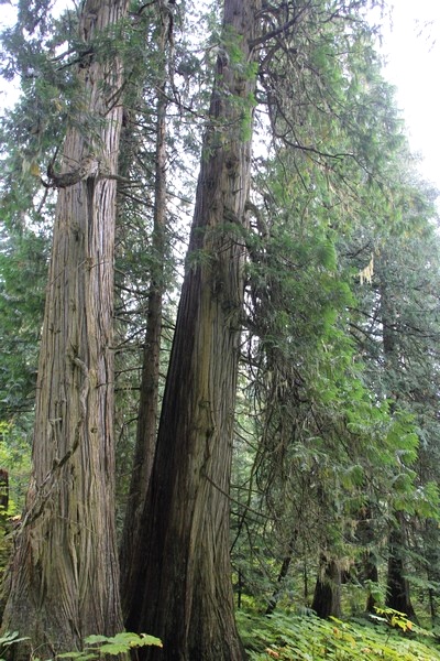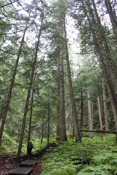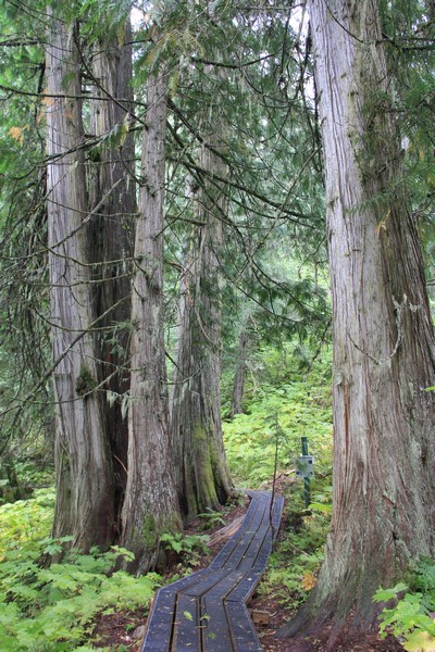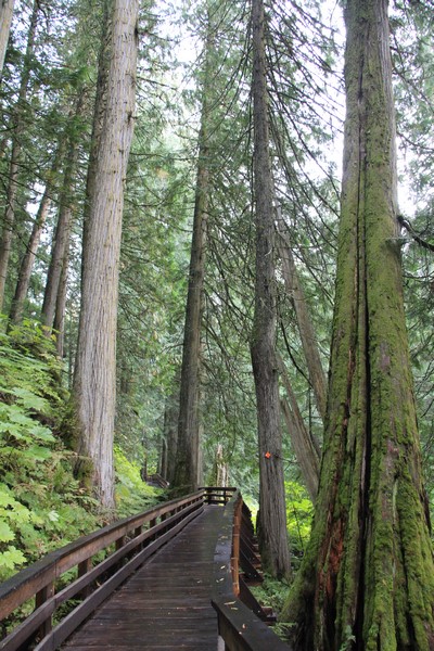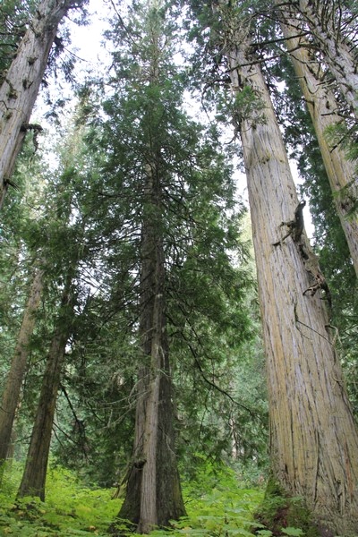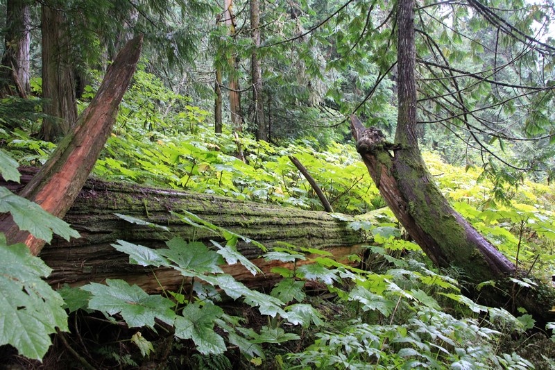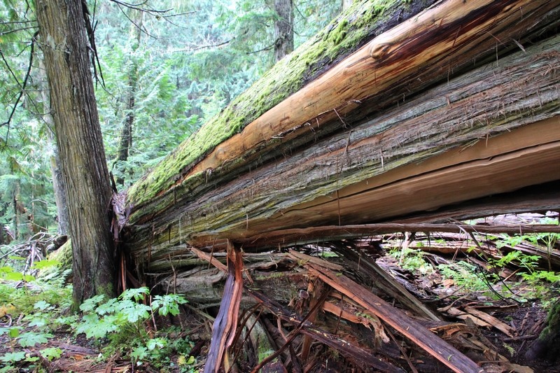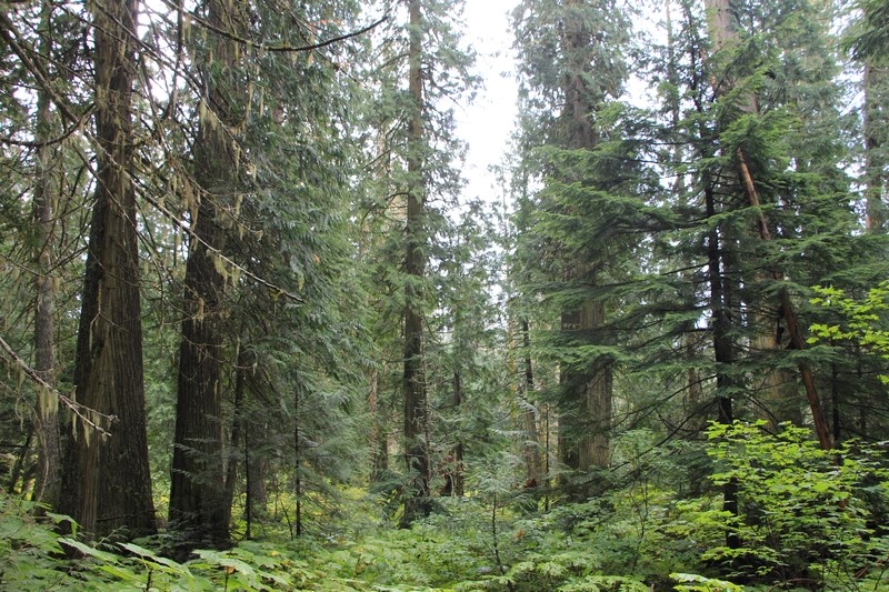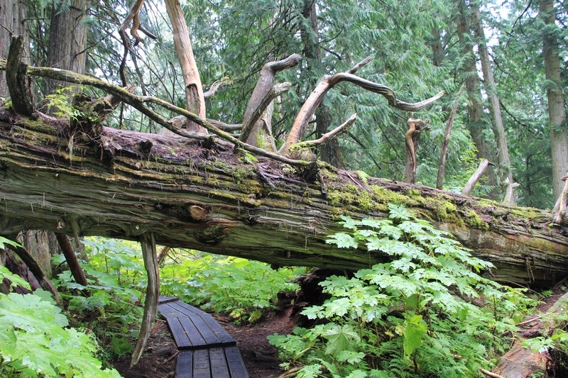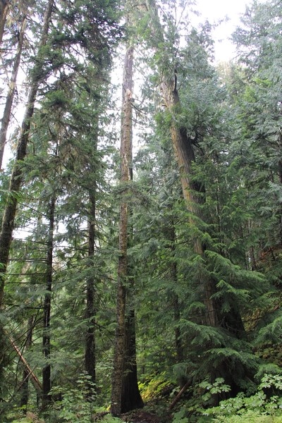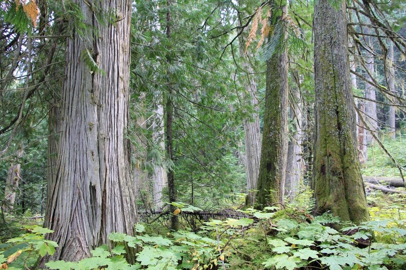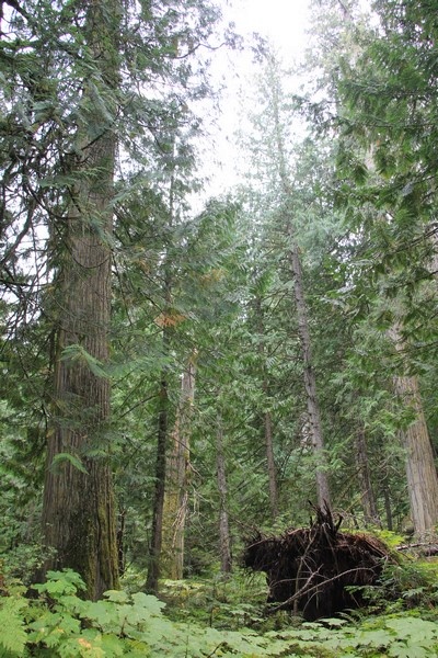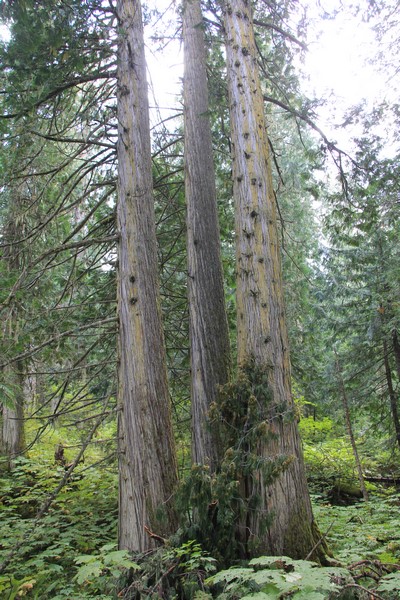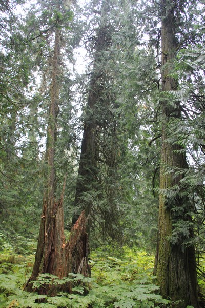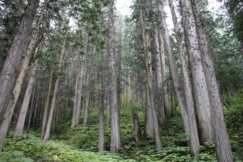 Dans cette partie de la British Columbia, les pluies venant du Pacifique et le relief montagneux ont engendré un écosystème forestier particulièrement riche : l'Inland Temperate Rainforest Ecosystem. Dans cette forêt tempérée humide des terres intérieures, se sont développés des Thuyas géants (Western Red Cedar / Thuja plicata) vieux de plusieurs milliers d'années. L'un des plus massifs qui ait été coupé faisait 9m de diamètre.