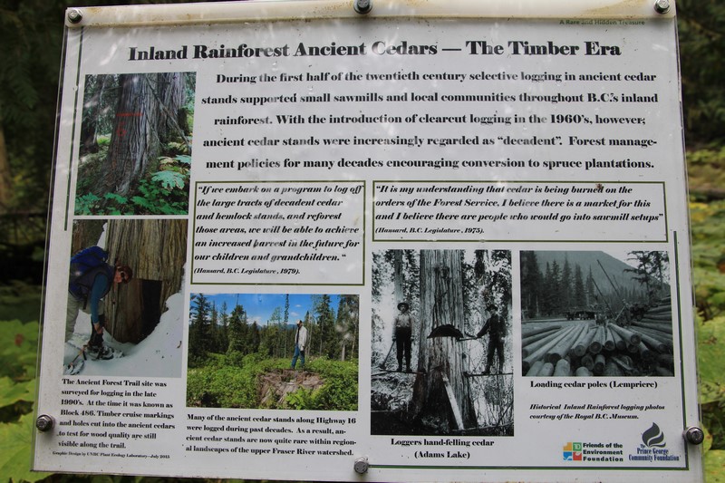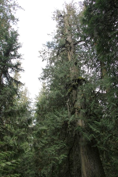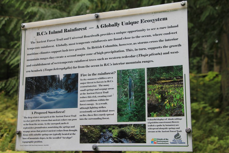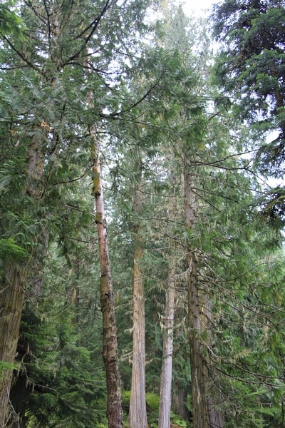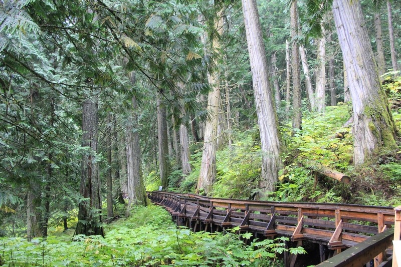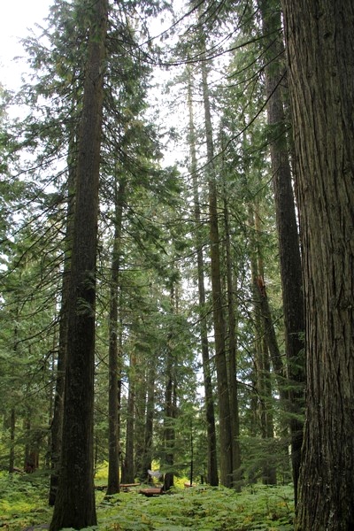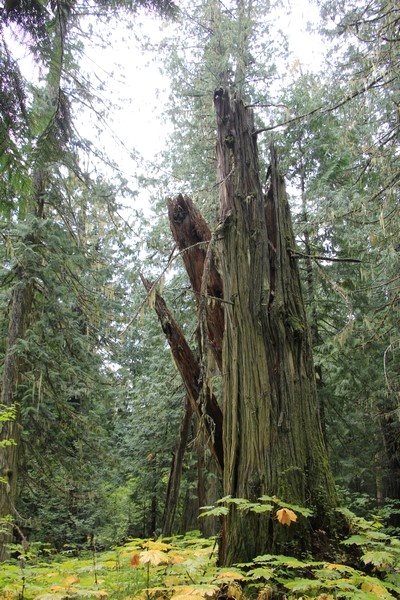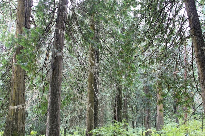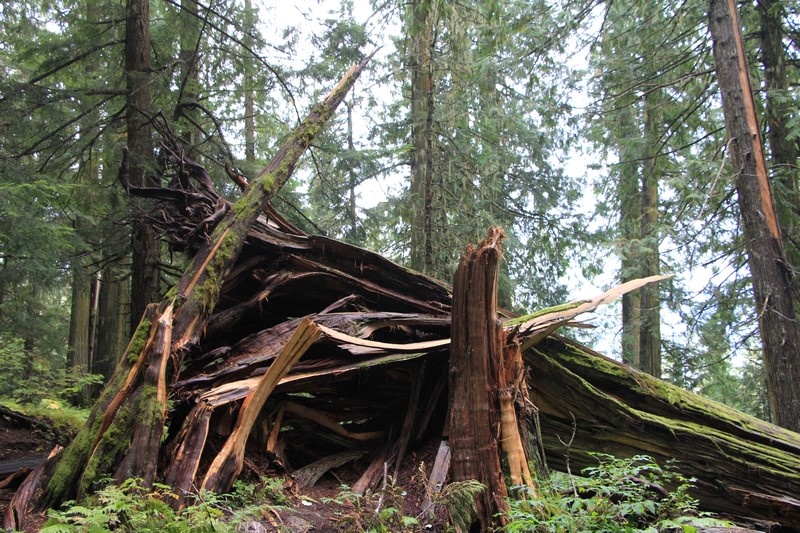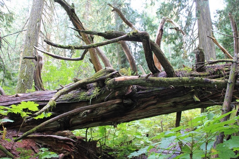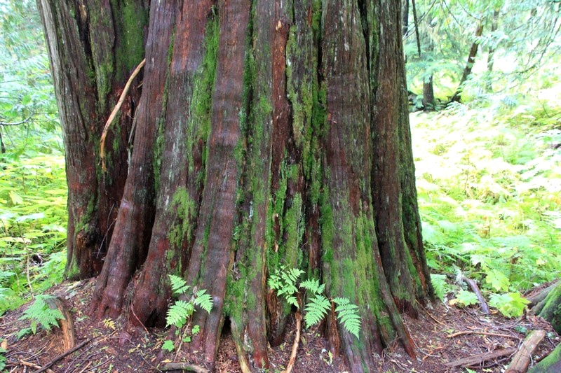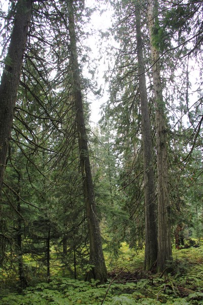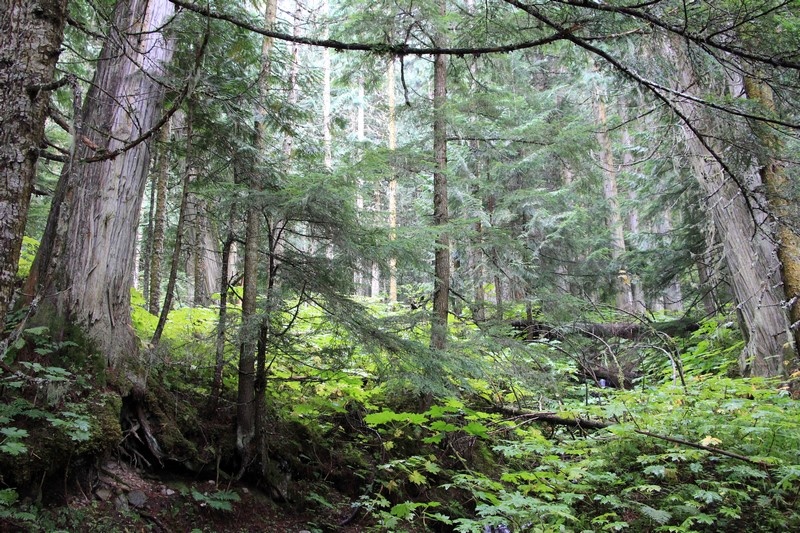 Dans cette partie de la British Columbia, les pluies venant du Pacifique et le relief montagneux ont engendré un écosystème forestier particulièrement riche : l'Inland Temperate Rainforest Ecosystem. Dans cette forêt tempérée humide des terres intérieures, se sont développés des Thuyas géants (Western Red Cedar / Thuja plicata) vieux de plusieurs milliers d'années. L'un des plus massifs qui ait été coupé faisait 9m de diamètre.