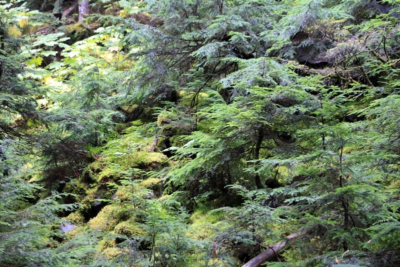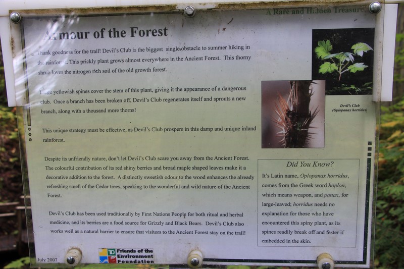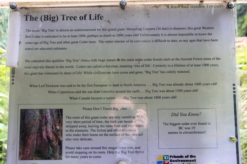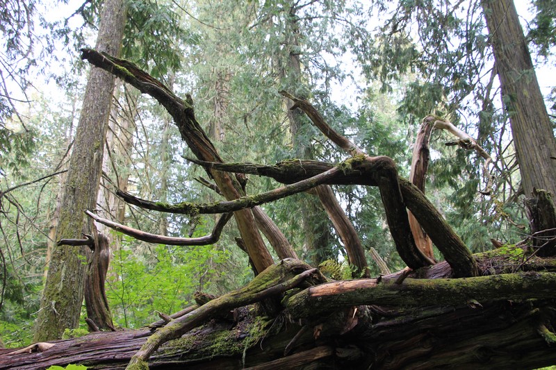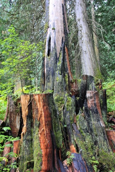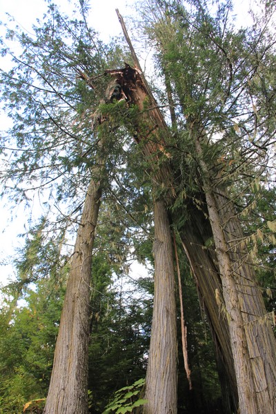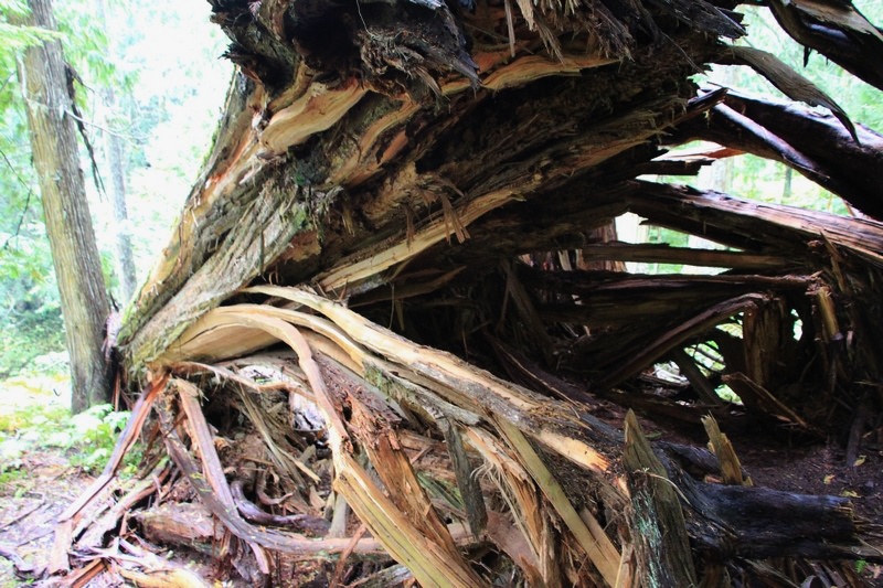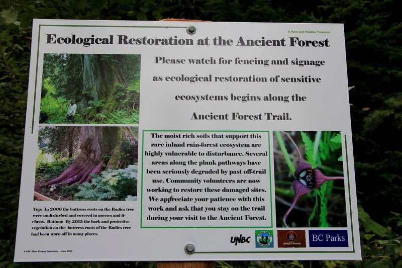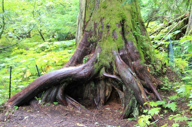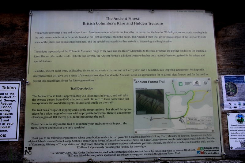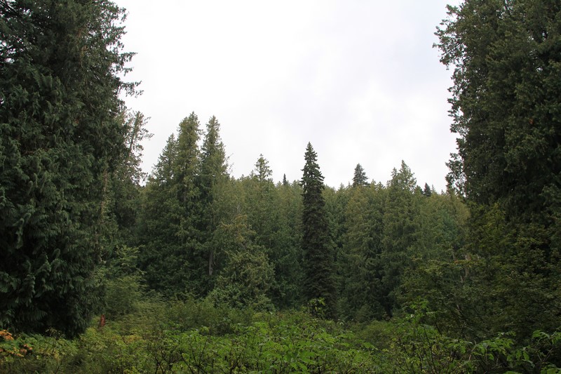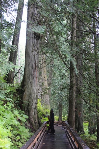 Dans cette partie de la British Columbia, les pluies venant du Pacifique et le relief montagneux ont engendré un écosystème forestier particulièrement riche : l'Inland Temperate Rainforest Ecosystem. Dans cette forêt tempérée humide des terres intérieures, se sont développés des Thuyas géants (Western Red Cedar / Thuja plicata) vieux de plusieurs milliers d'années. L'un des plus massifs qui ait été coupé faisait 9m de diamètre.
