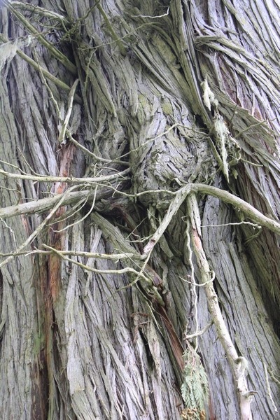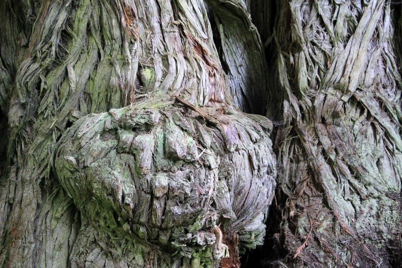 Certains de ces arbres ont plus de 1000 ans. Ils n'ont rien de gigantesque comme les séquoias, mais sont tout aussi mystérieux. Leurs écorces entaillées de profondes rides sont autant de visages, autant d'histoires que l'on souhaite découvrir. Alors, on s'arrête à côté d'eux, on tend l'oreille et on écoute leurs murmures qui vous emplissent le cœur de joie et de tristesse. La joie de côtoyer des êtres aussi merveilleux et pleins de sagesse. La tristesse de leurs chants contant le massacre de leurs frères et sœurs disparus à jamais.