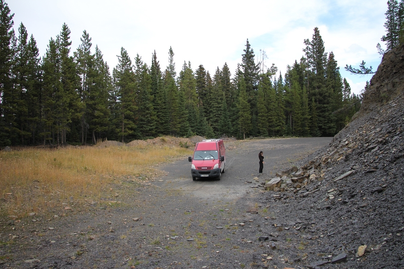 On se déniche un spot dodo dans une carrière à l'écart de la piste (46.859897,-110.745786), très tranquille.