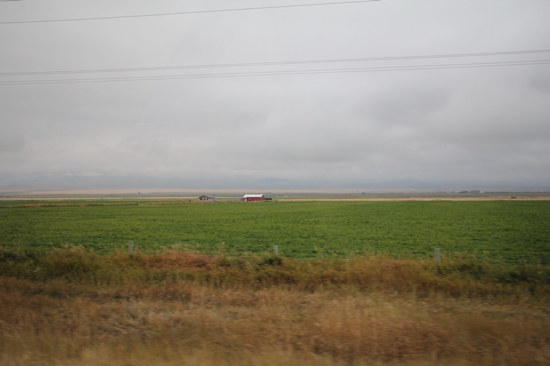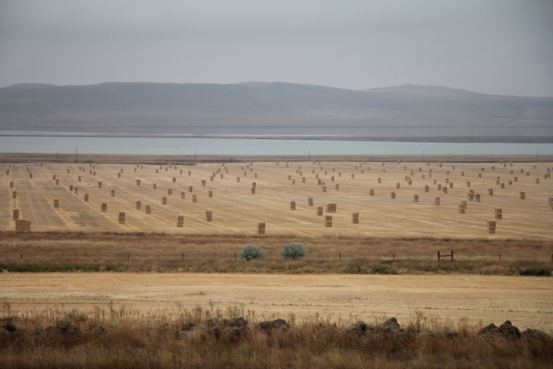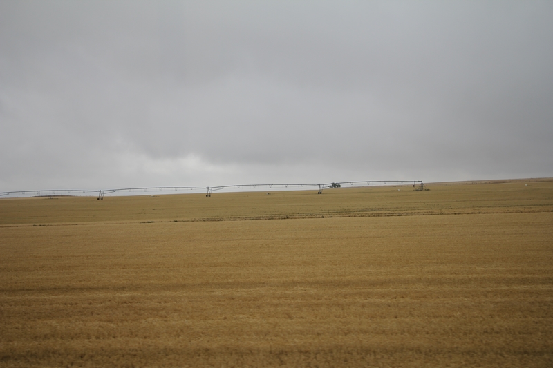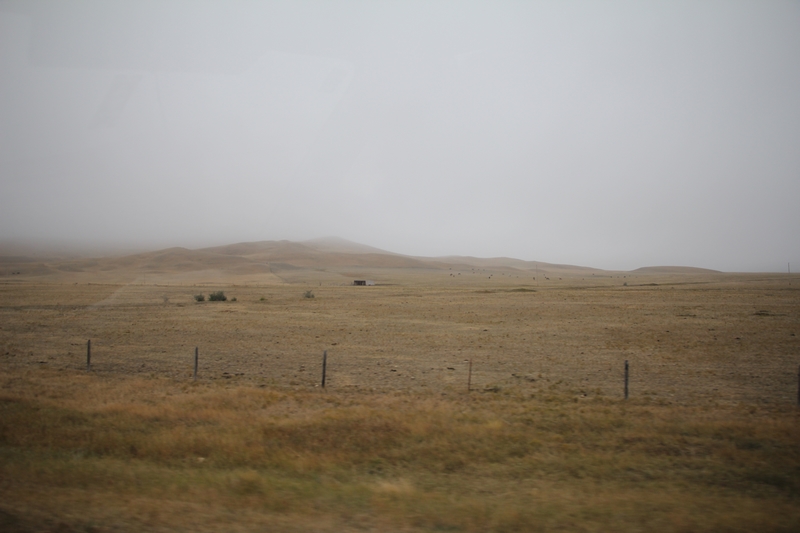 Nous quittons les montagnes pour des collines herbeuses transformées en immenses champs.