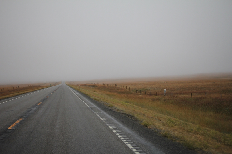 Nous prenons la route en direction de Great Falls sous un ciel couvert.