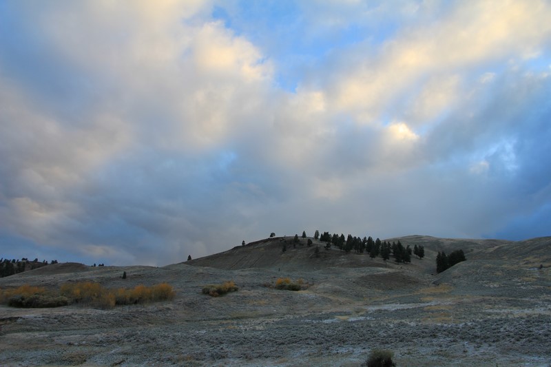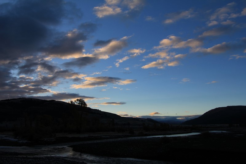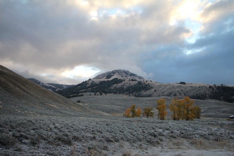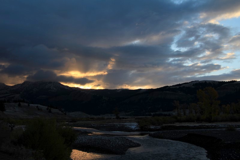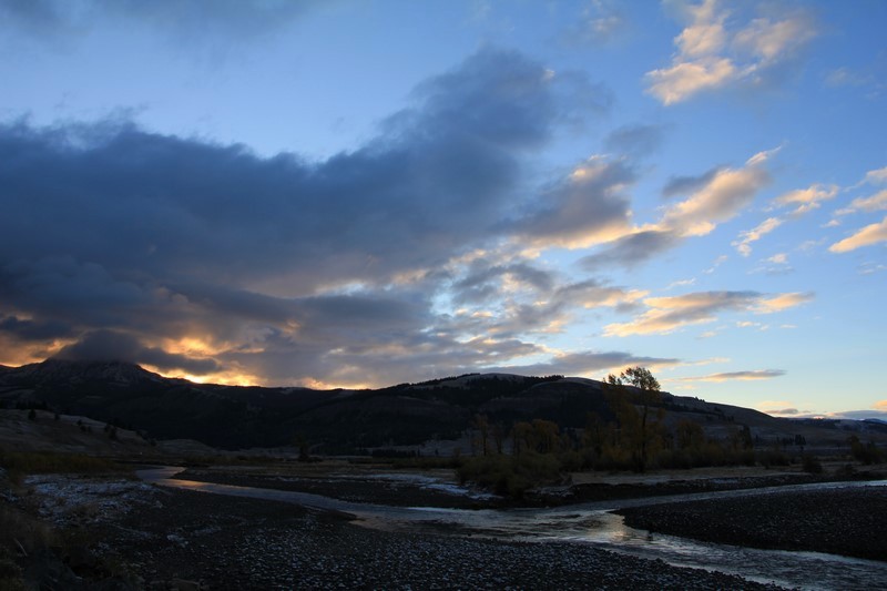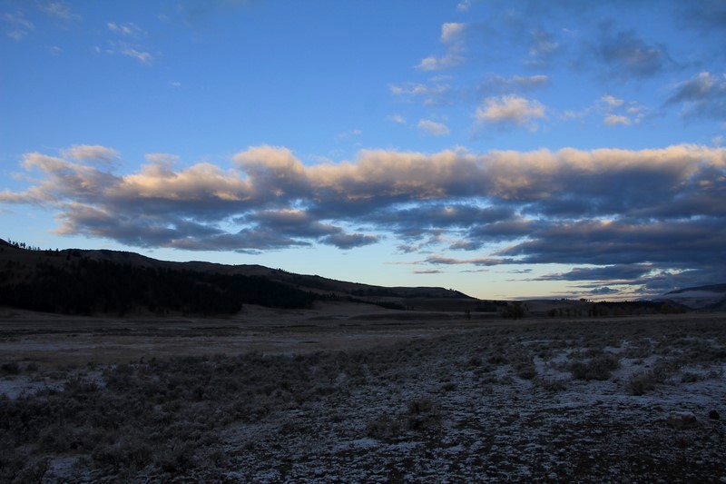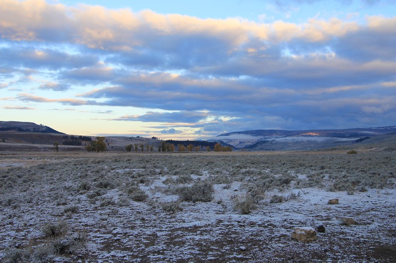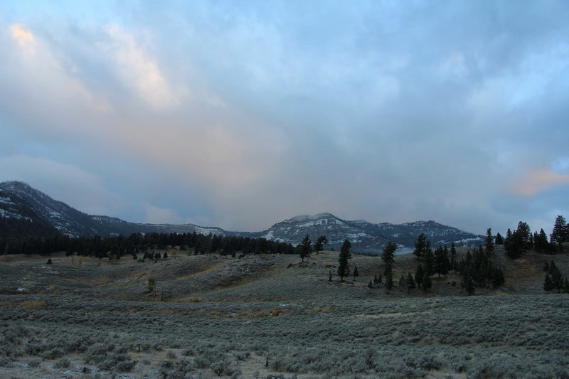 Le ciel semble se dégager et on assiste à un joli lever de soleil sur la Lamar Valley.