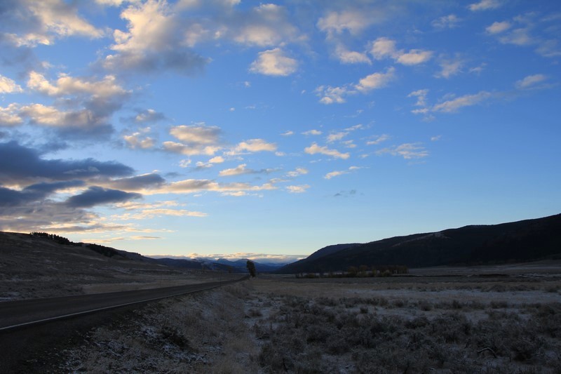 Le deuxième spot sera le bon : un bord de piste à l'entrée d'une National Forest, entre forêt et prairie (44.654382,-111.123725) .